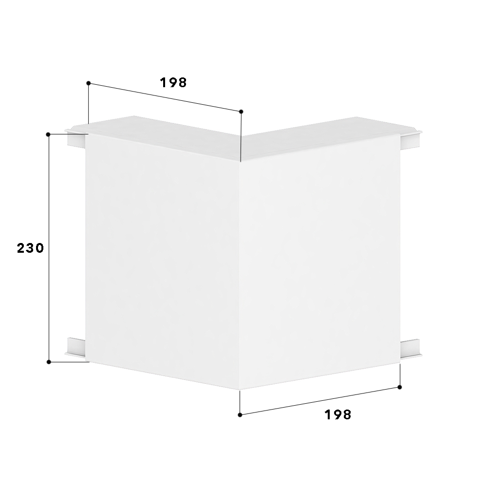 Außeneck 90°, aus dem Grundprofil des Leitungsführungskanal aus PVC, zur Leitungsverlegung um Mauervorsprünge, Schenkellänge: 200 mm.