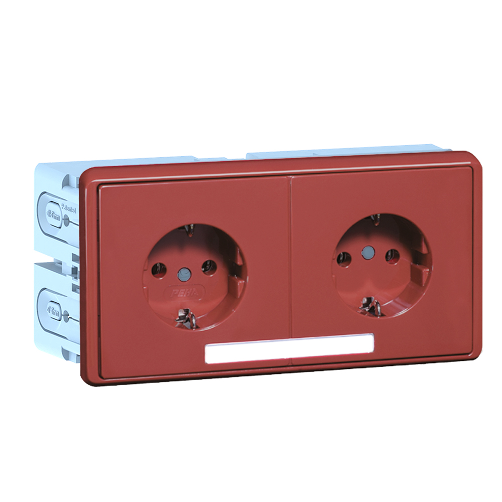 Steckdose 2-fach KSE/P-2-3001, mit Rahmen, frontrastend, rot