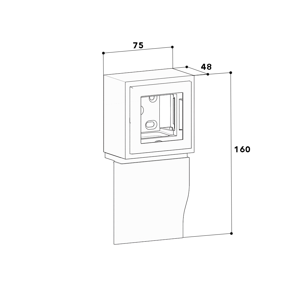 Appliance box for the 4D E skirting trunking, for device installation of a compact M45 built-in device in the format 45x45 mm (e.g. socket outlet, data socket outlet, antenna socket outlet, USB charging socket outlet, switch), device support with transition cover to the skirting and support profile including fixing material for screwing above the skirting trunking base. Note: The covers of the skirting trunking can be slid sideways under the transition cover of the device support, whereby the transition cover of the device support performs a cut-covering function for the covers of the skirting trunking.