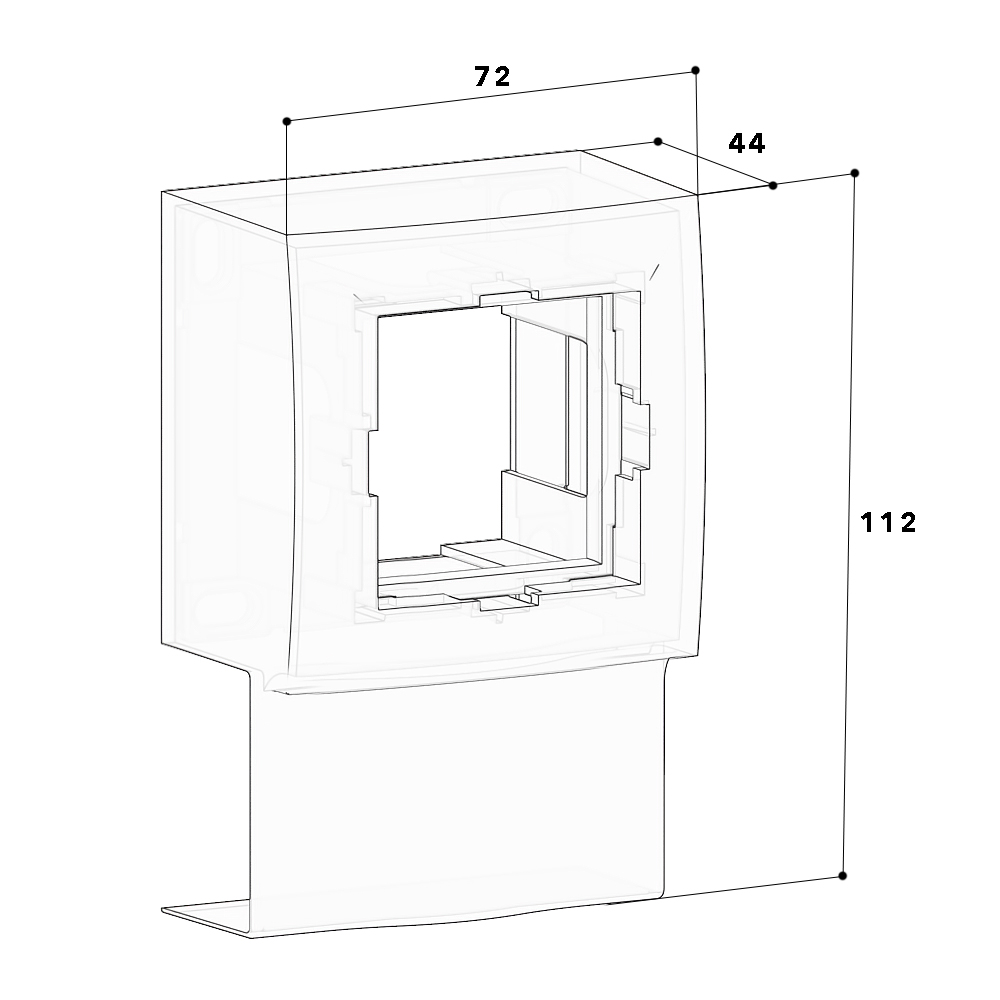 Surface-mounted box for freely positionable mounting on the installation trunking, for device installation of a compact M45 flush-mounted device in the format 45x45 mm, with overarching cover for the installation trunking.