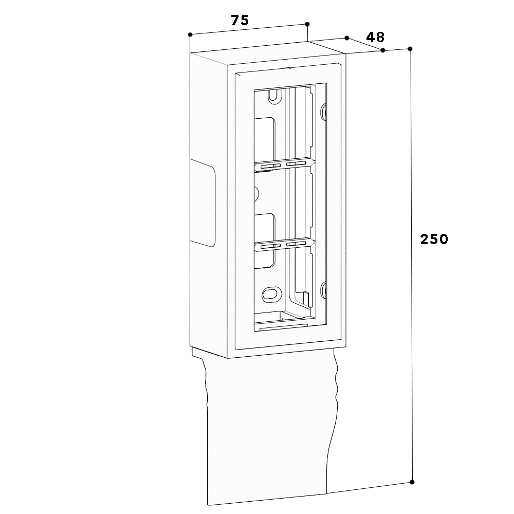 Appliance box for the 4D E skirting trunking "Belle epoque", for device installation of three compact M45 built-in devices in the format 45x45 mm (e.g. socket, data socket, antenna socket, USB charging socket, switch), device support with transition cover to the skirting and support profile including fixing material for screwing above the skirting trunking base. Special feature: Due to its vertical alignment, this device support can be mounted on the wall in places where space is limited (e.g. room niche, etc.). Note: The covers of the skirting trunking can be pushed sideways under the transition cover of the unit support, whereby the transition cover of the unit support performs a cut-covering function for the covers of the skirting trunking.