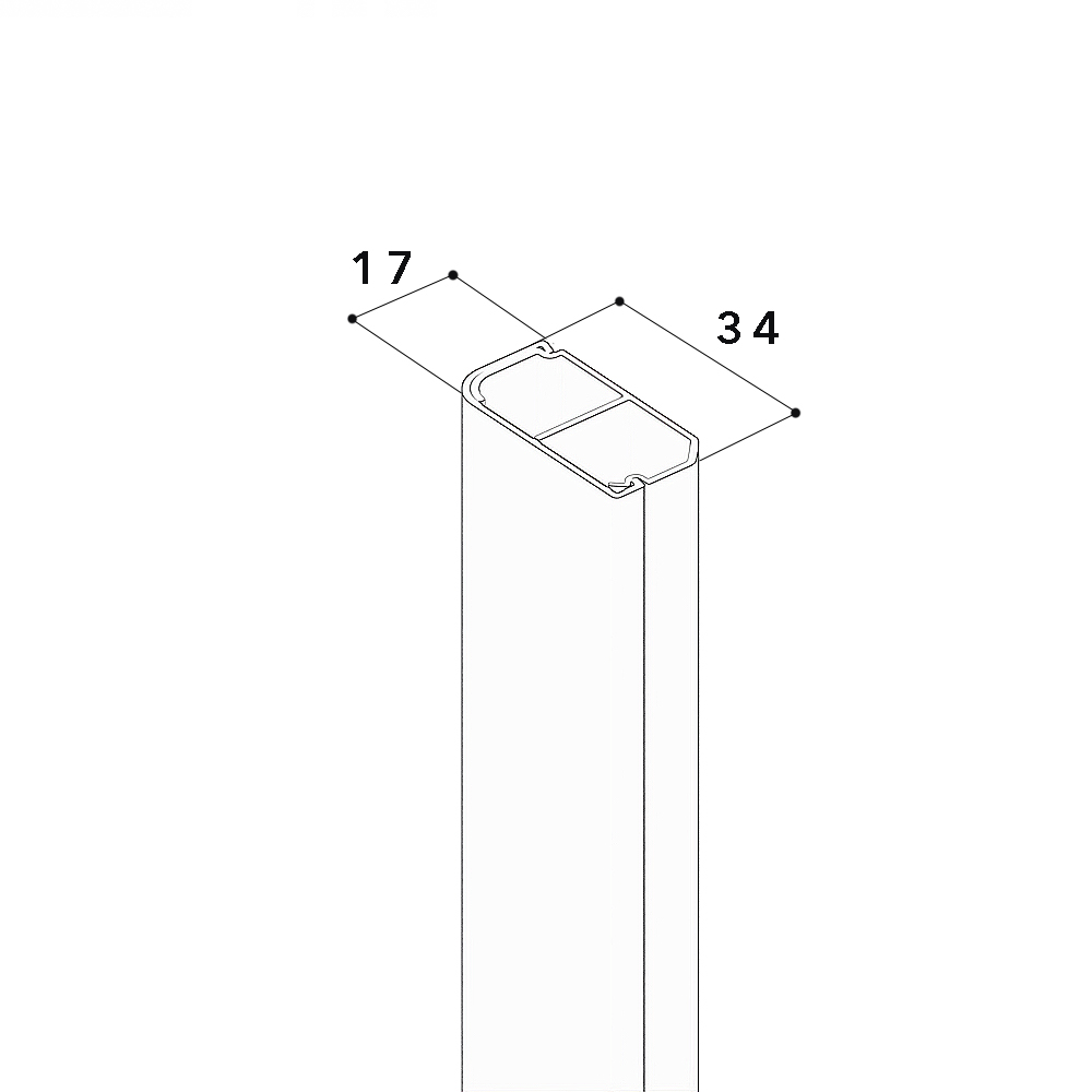 PVC installation trunking according to DIN EN 50085-2-1, for routing cables in room corners (wall and ceiling), especially suitable for routing cables from floor to floor, consisting of completely overlapping cover and base with base perforation for fixing in a corner and with fixed partition. Note: The cover can also be painted over or covered with wallpaper if required.