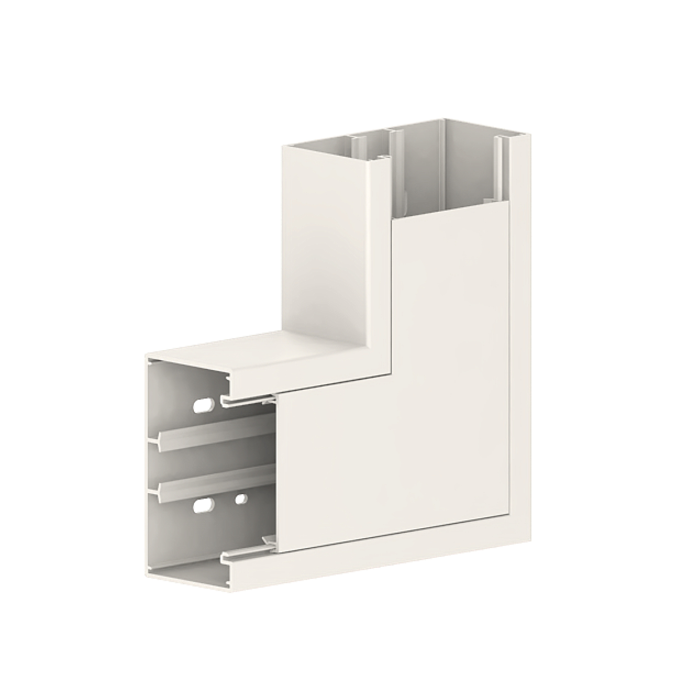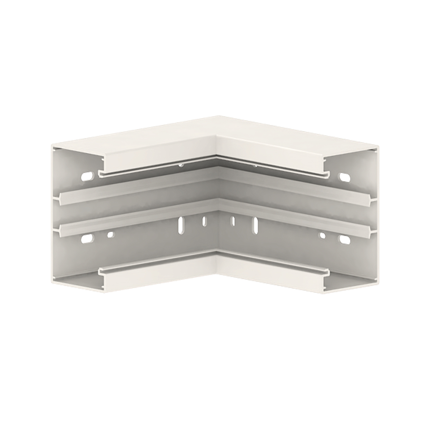 Flat angle, from the basic profile of the wall duct made of PVC, for cable laying with a 90° change of direction on the wall, side length: 200 mm.