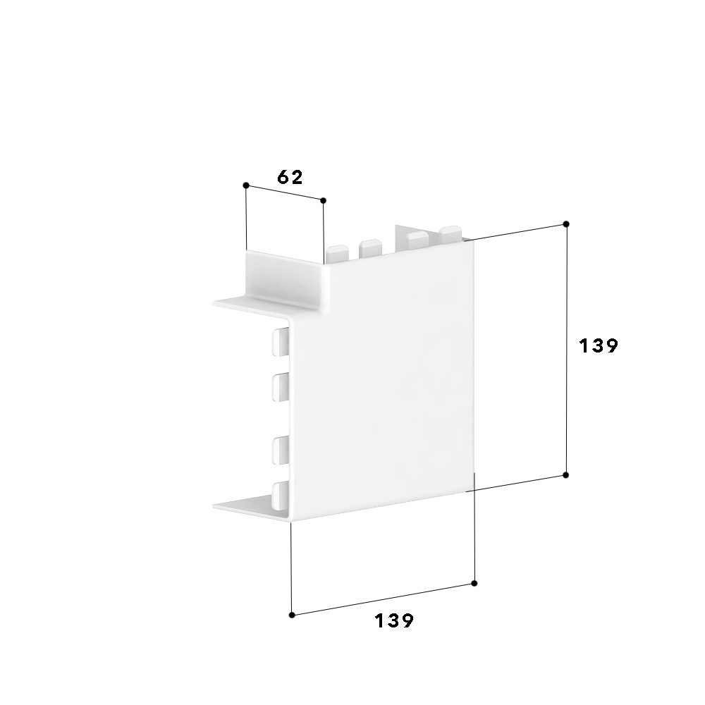 Flat angle as moulded hood for installation trunking, for cable routing with a 90° change of direction.