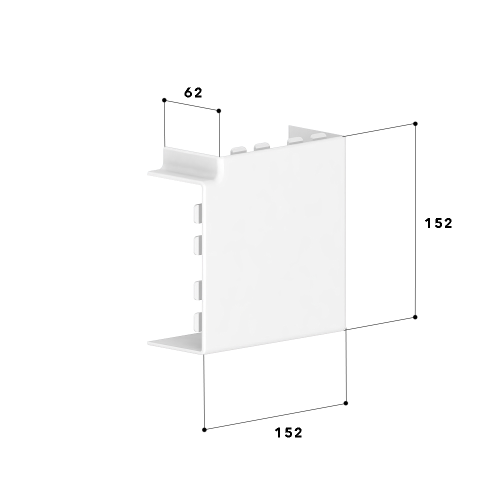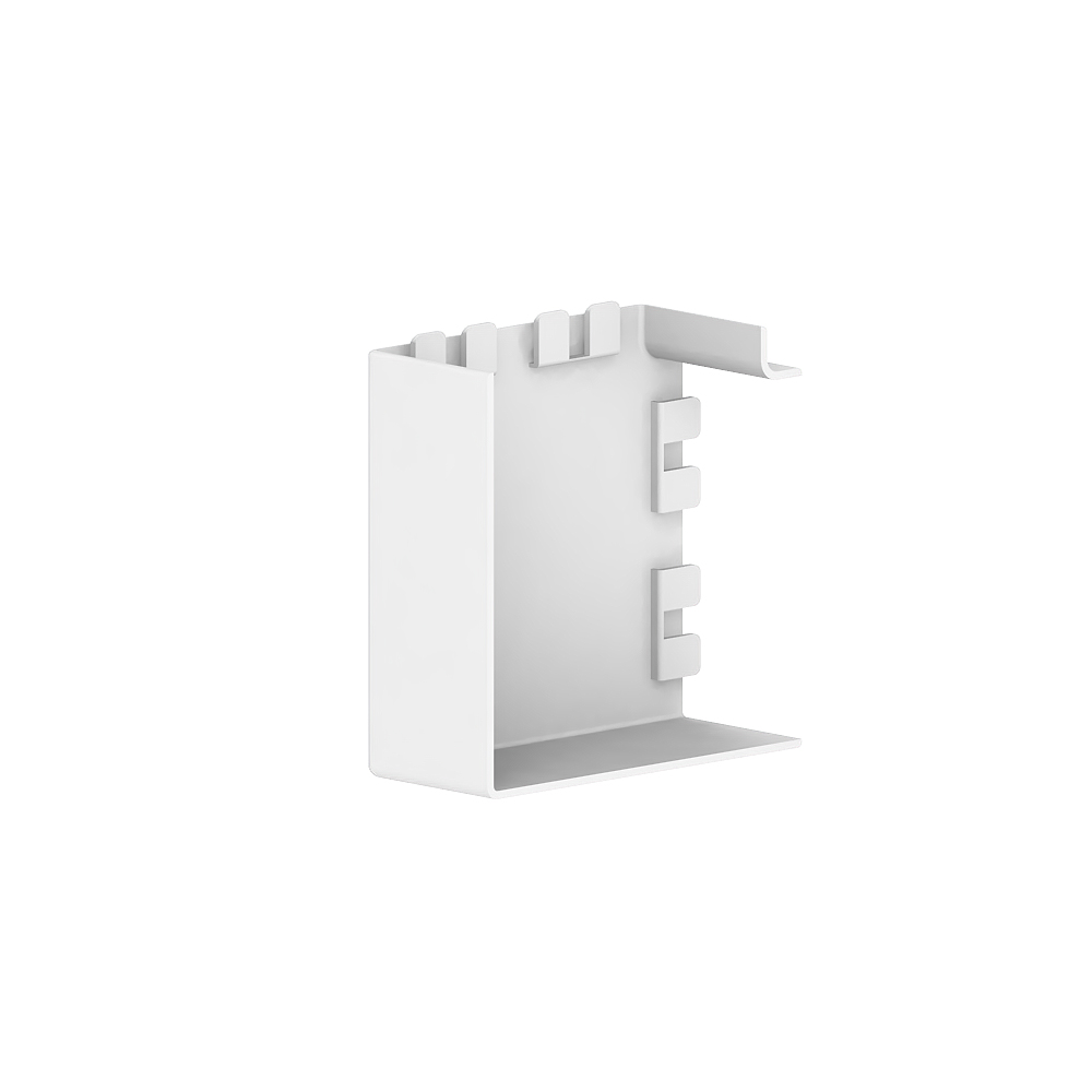 Flat angle as moulded hood for installation trunking, for cable routing with a 90° change of direction.
