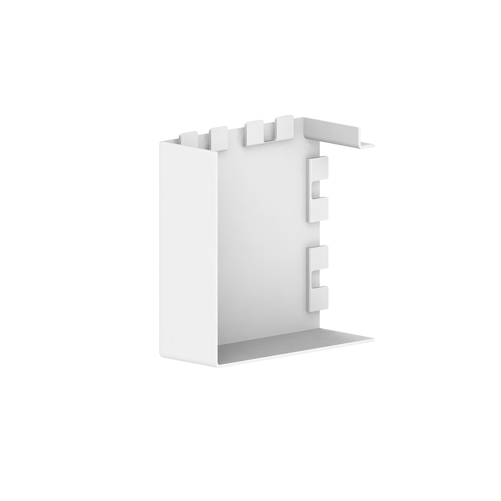 Flat angle as moulded hood for installation trunking, for cable routing with a 90° change of direction.