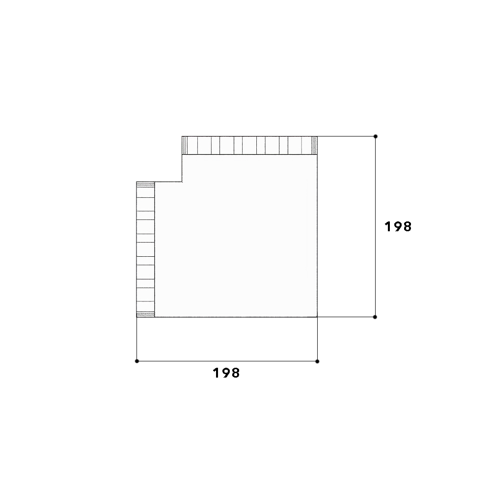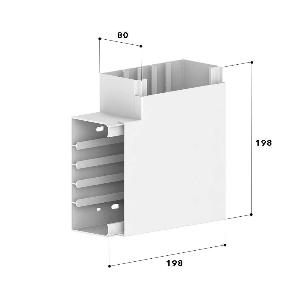 Flat angle, from the basic profile of the installation trunking made of PVC, for cable routing with a 90° change of direction, side length: 200 mm.