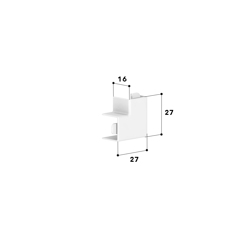 Flat angle as moulded hood for installation trunking, for cable routing with a 90° change of direction.