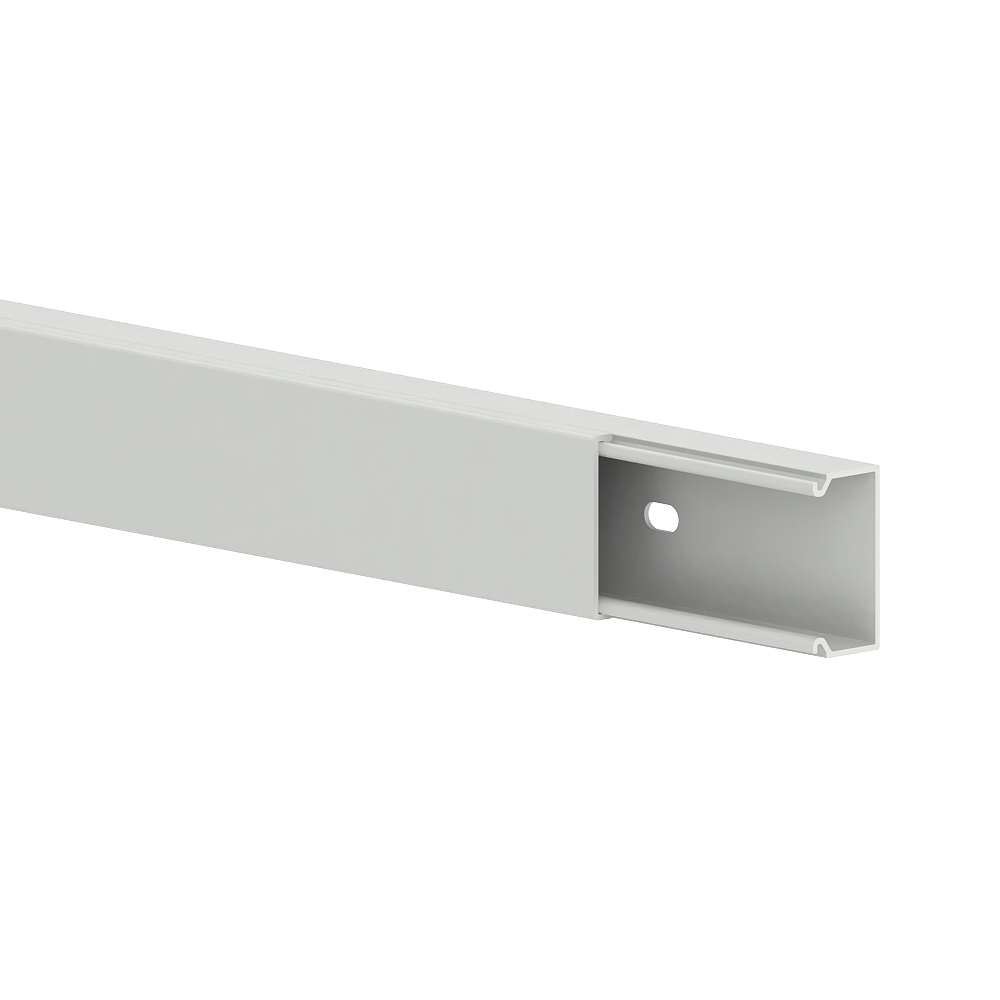Flat angle as moulded hood for installation trunking, for cable routing with a 90° change of direction.