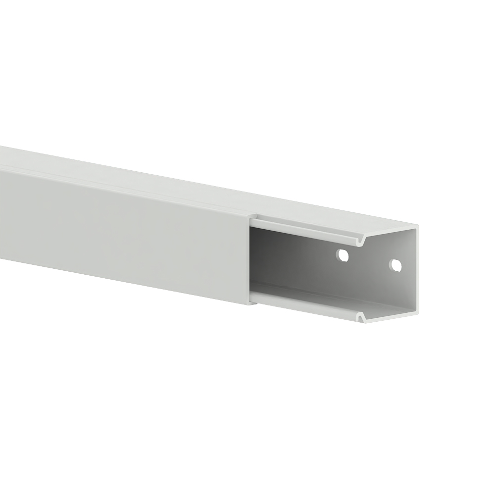 Flat angle as moulded hood for installation trunking, for cable routing with a 90° change of direction.