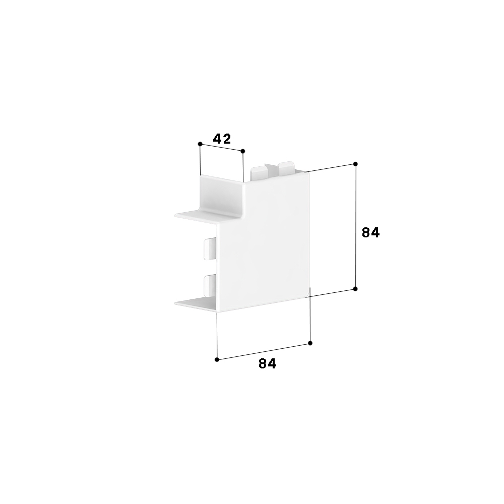 Flat angle as moulded hood for installation trunking, for cable routing with a 90° change of direction.