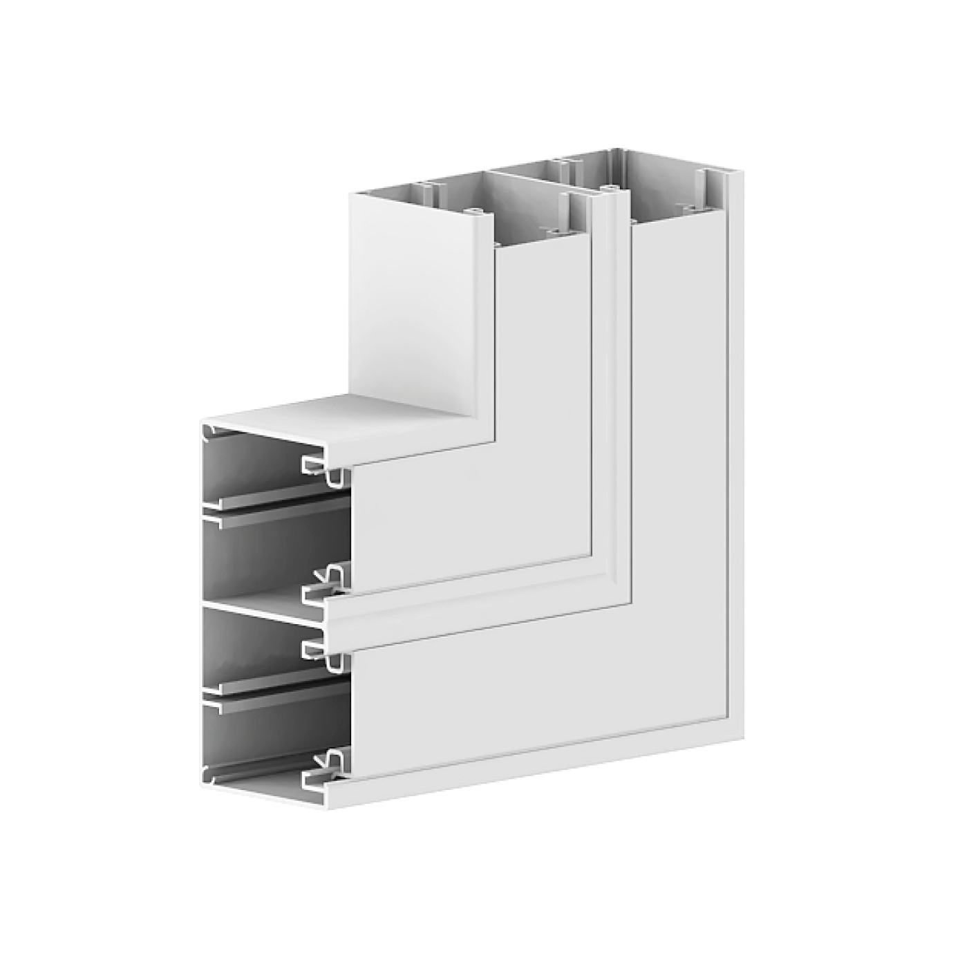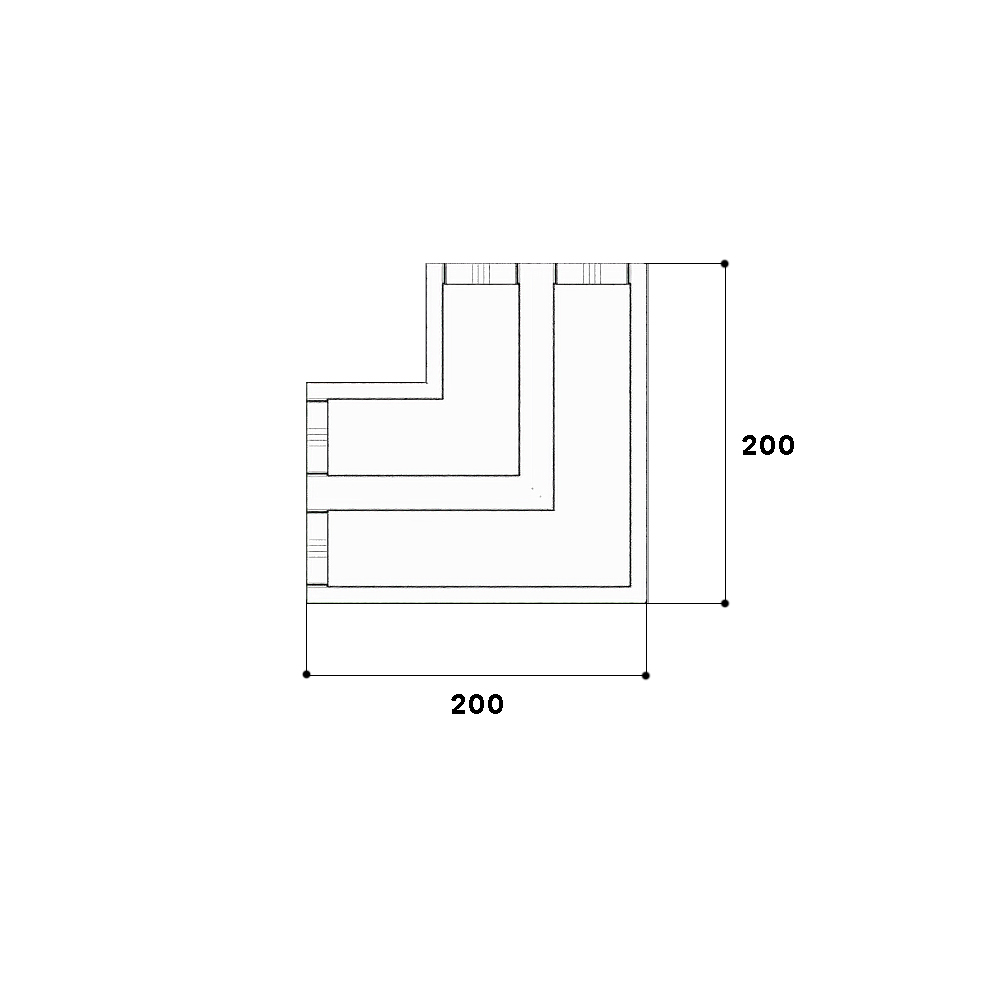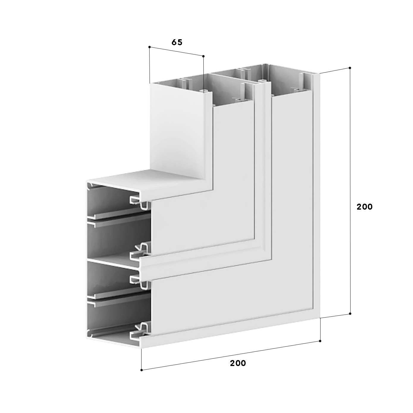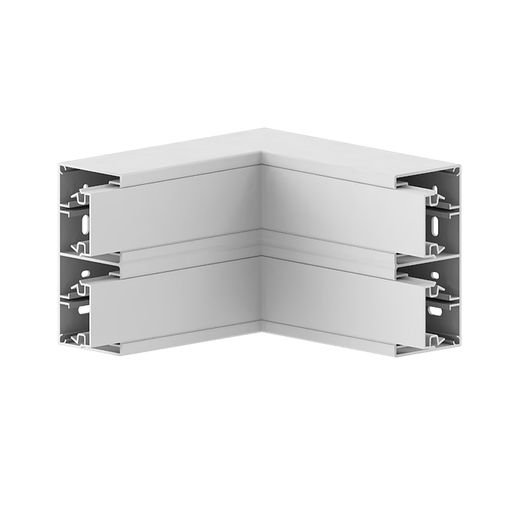 Flat angle, from the basic profile of the wall duct made of PVC, for cable laying with a 90° change of direction on the wall, side length: 200 mm.