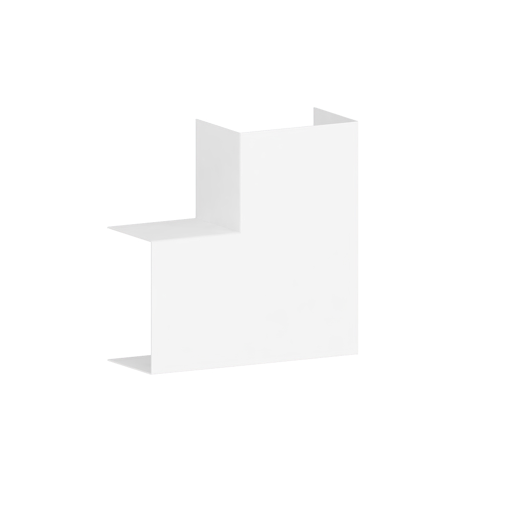 Flat angle as cut-laminating moulded hood for wall duct made of aluminium, for cable routing with a 90° change of direction on the wall.