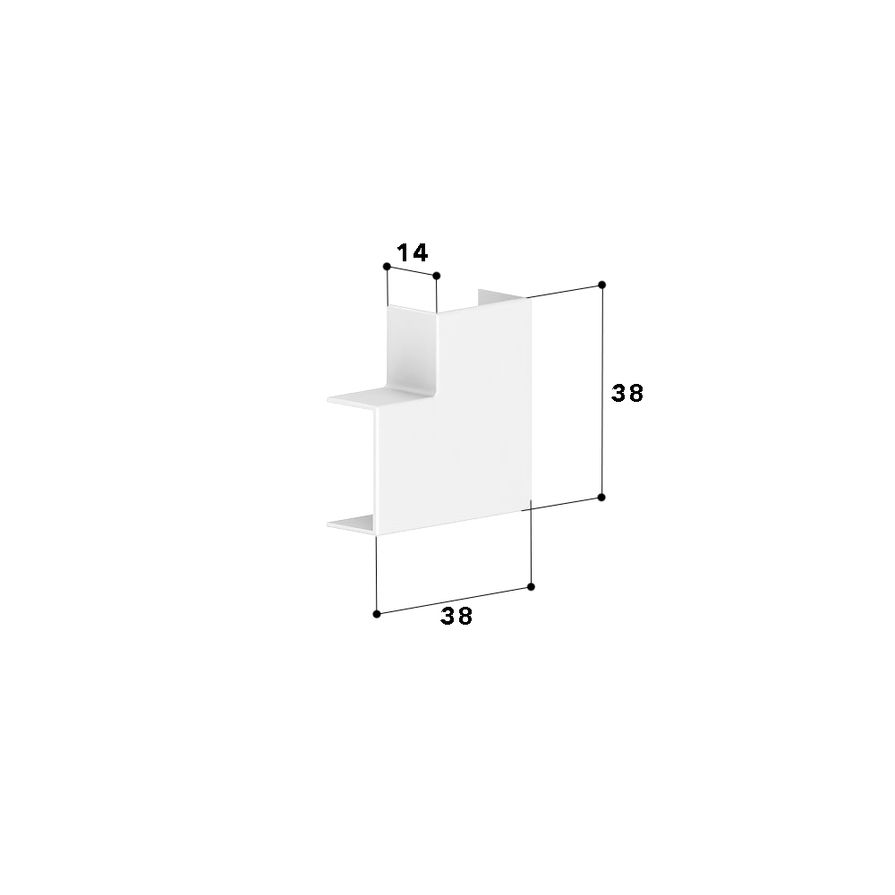 Flat angle as moulded hood for installation trunking, for cable routing with a 90° change of direction.