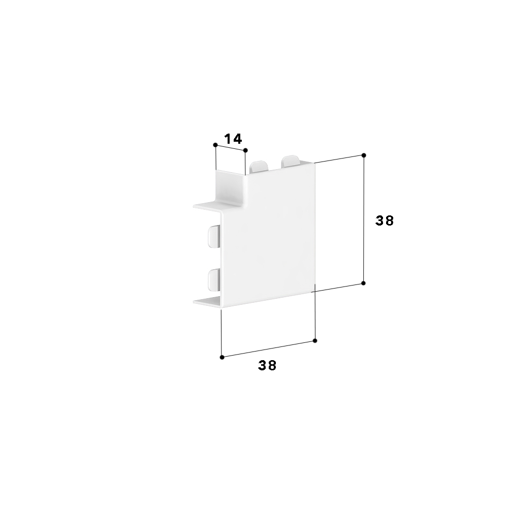 Flat angle as moulded hood for installation trunking, for cable routing with a 90° change of direction.