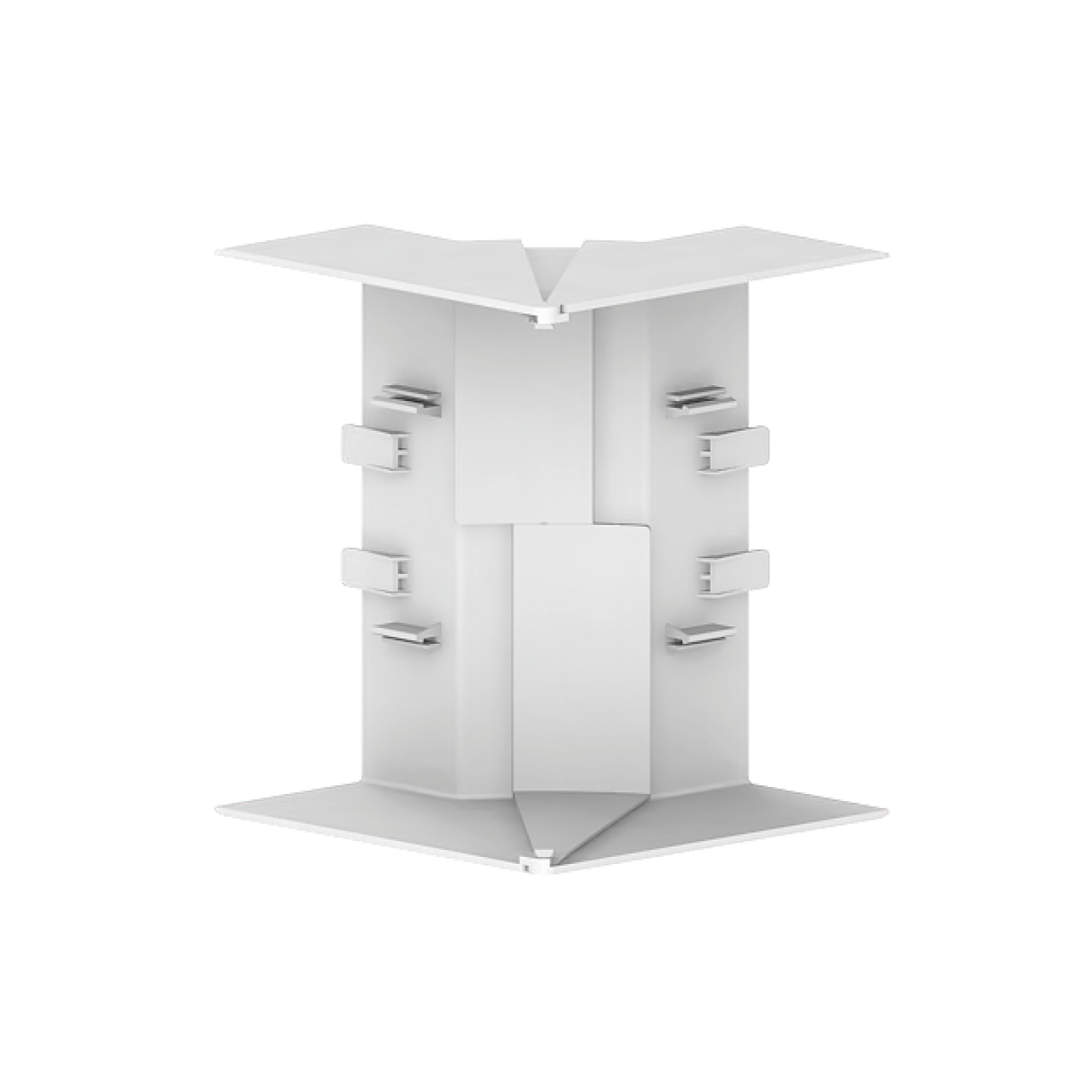 Inner corner as moulded part for wall duct, angle-adjustable with an adjustment range of +/- 10°, for corner bypass in rooms. Note: When installing the wall duct bases, a minimum distance of 110 mm to the wall must be maintained.