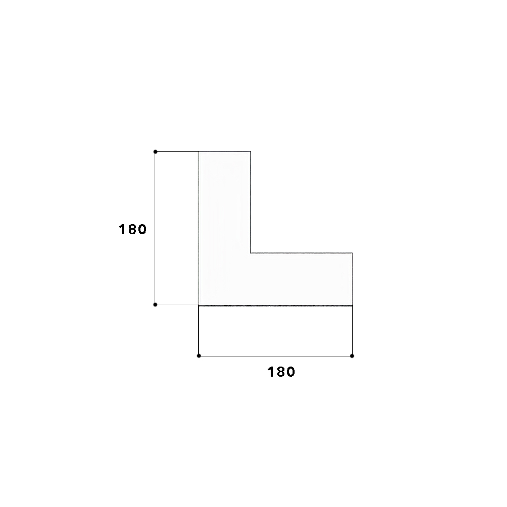 Internal corner 90°, made from the basic profile of the PVC wall duct base, for corner bypass in rooms, side length: 180 mm.