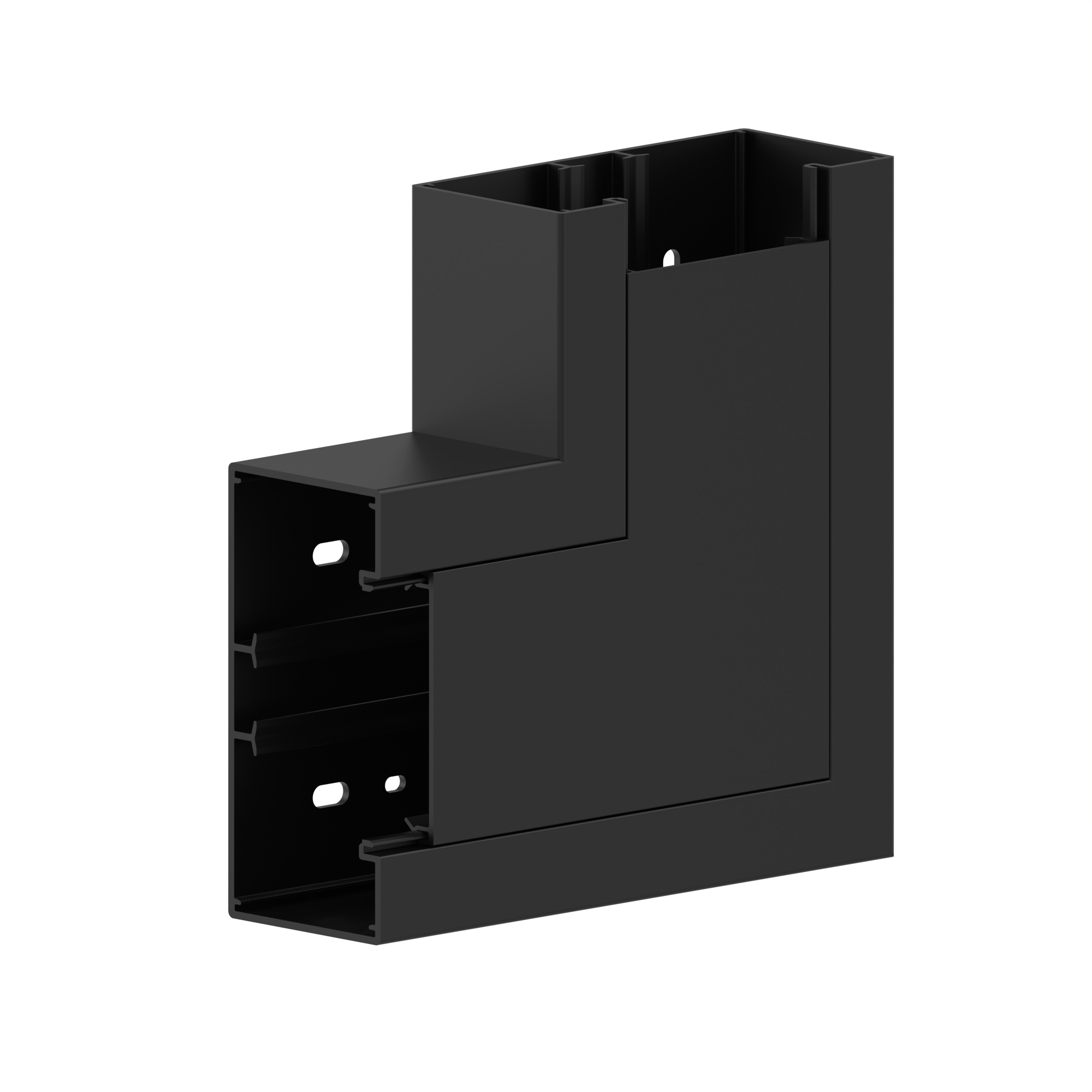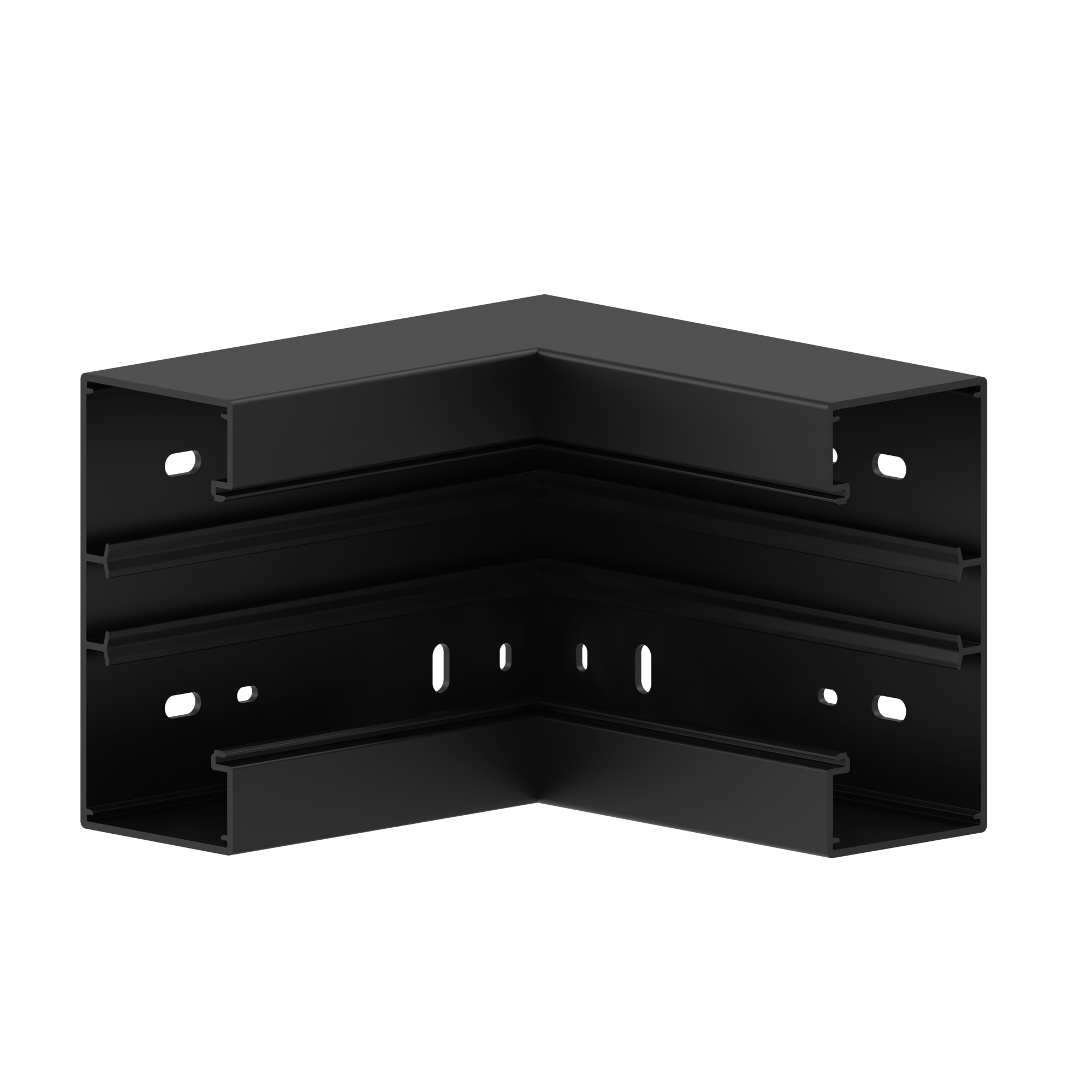Internal corner 90°, made from the basic profile of the PVC wall duct base, for corner bypass in rooms, side length: 180 mm.