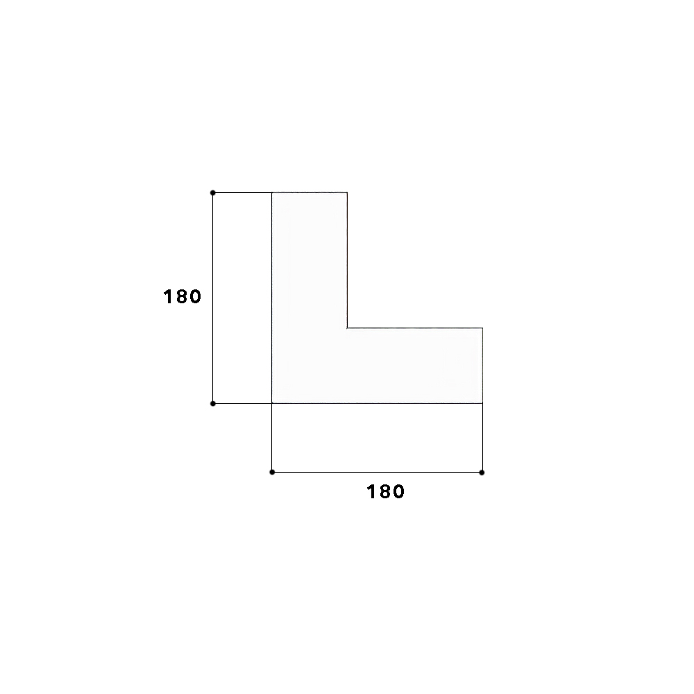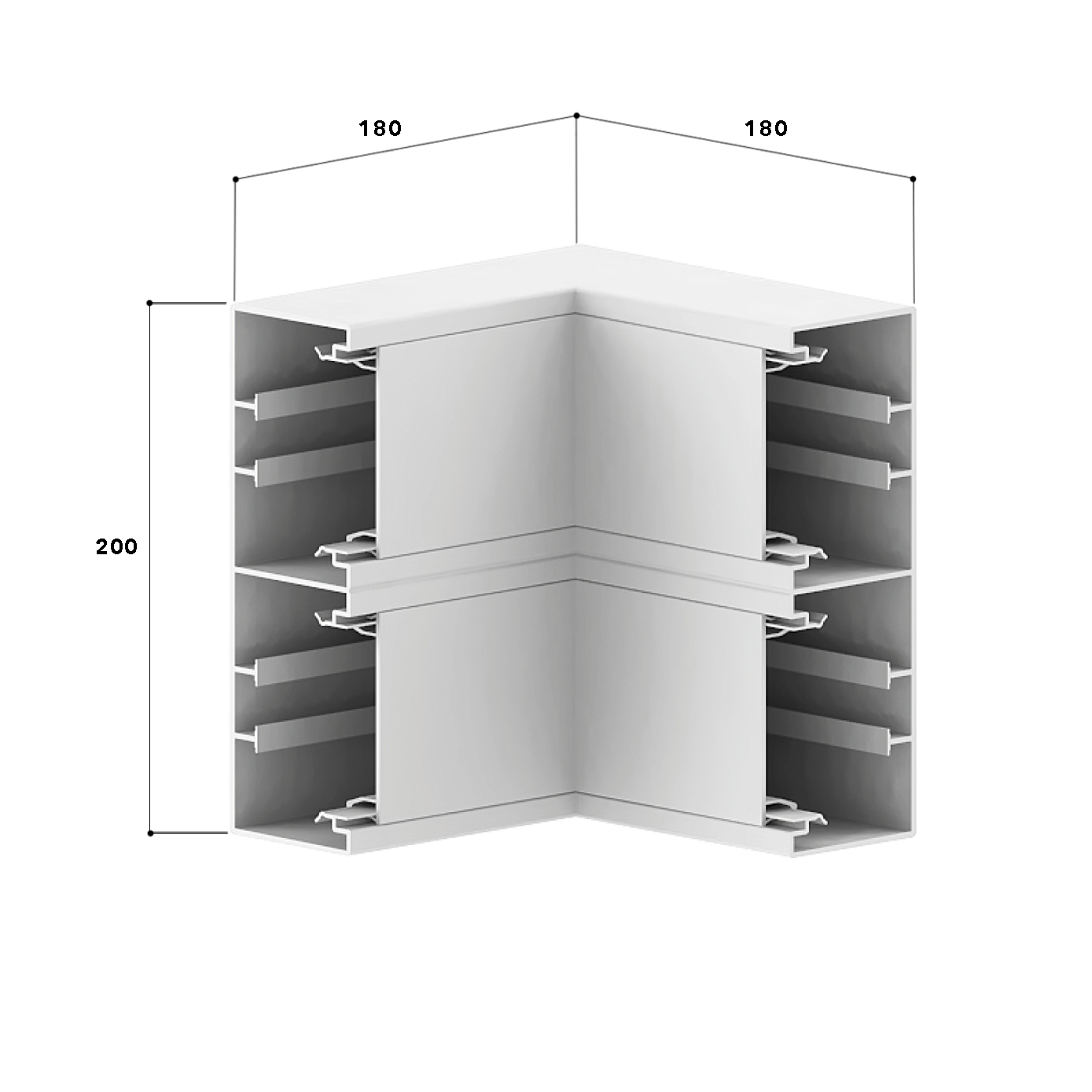 Internal corner 90°, made from the basic profile of the PVC wall duct base, for corner bypass in rooms, side length: 180 mm.