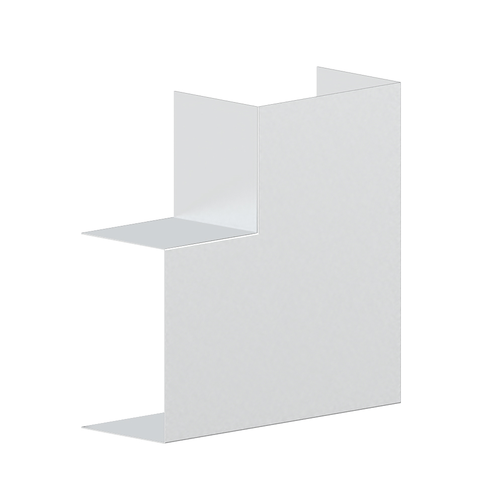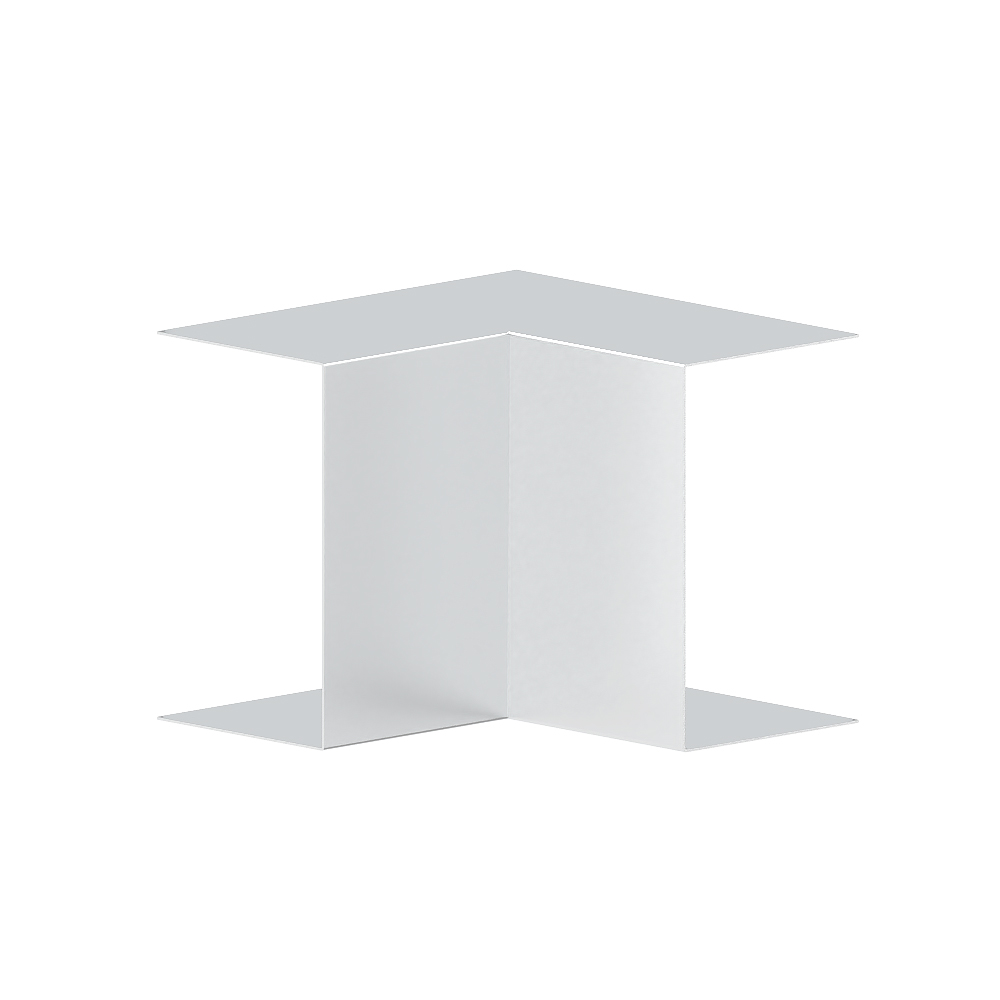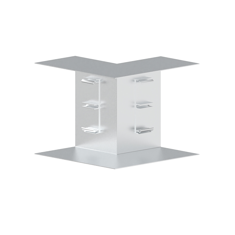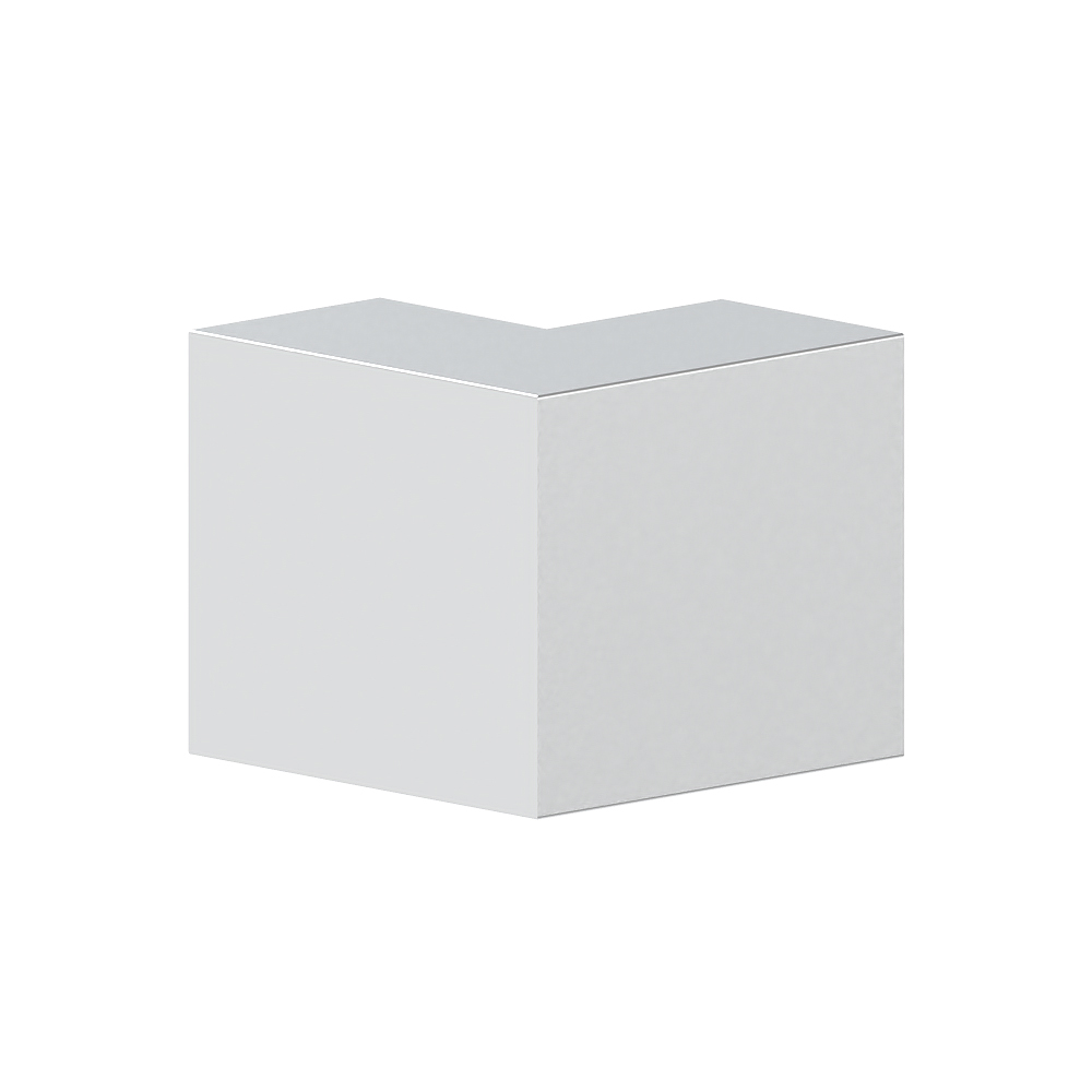 Inner corner as cut-covering moulded hood for aluminium wall duct, for corner bypass in rooms, with pre-assembled cover for insertion into the base, side length 170 mm.