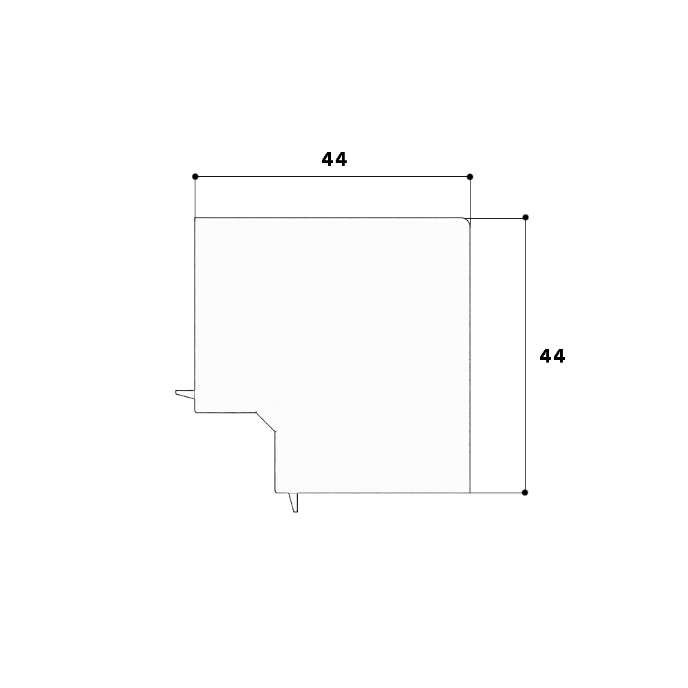Internal corner as moulded hood for installation trunking, for corner bypass in rooms.