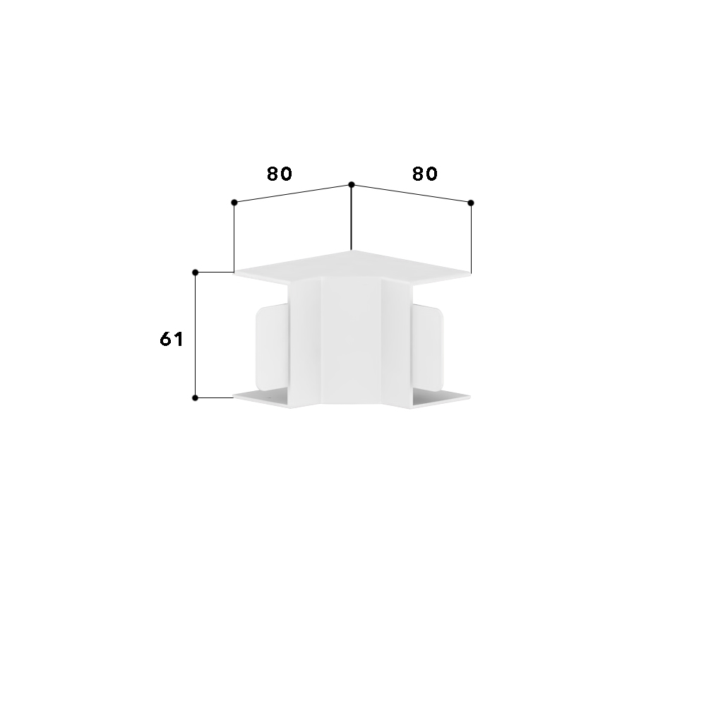 Internal corner as moulded hood for installation trunking, for corner bypass in rooms.