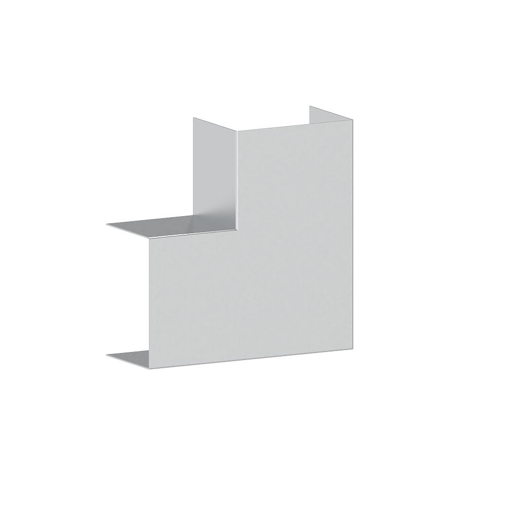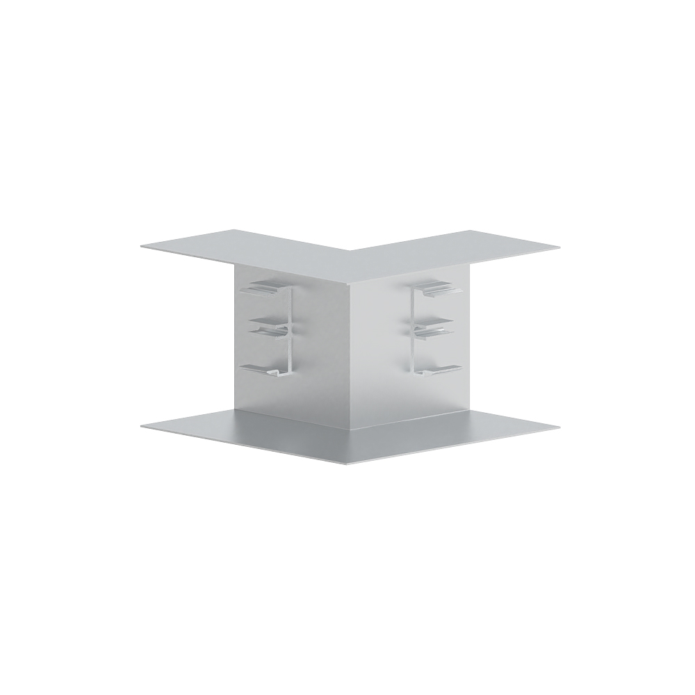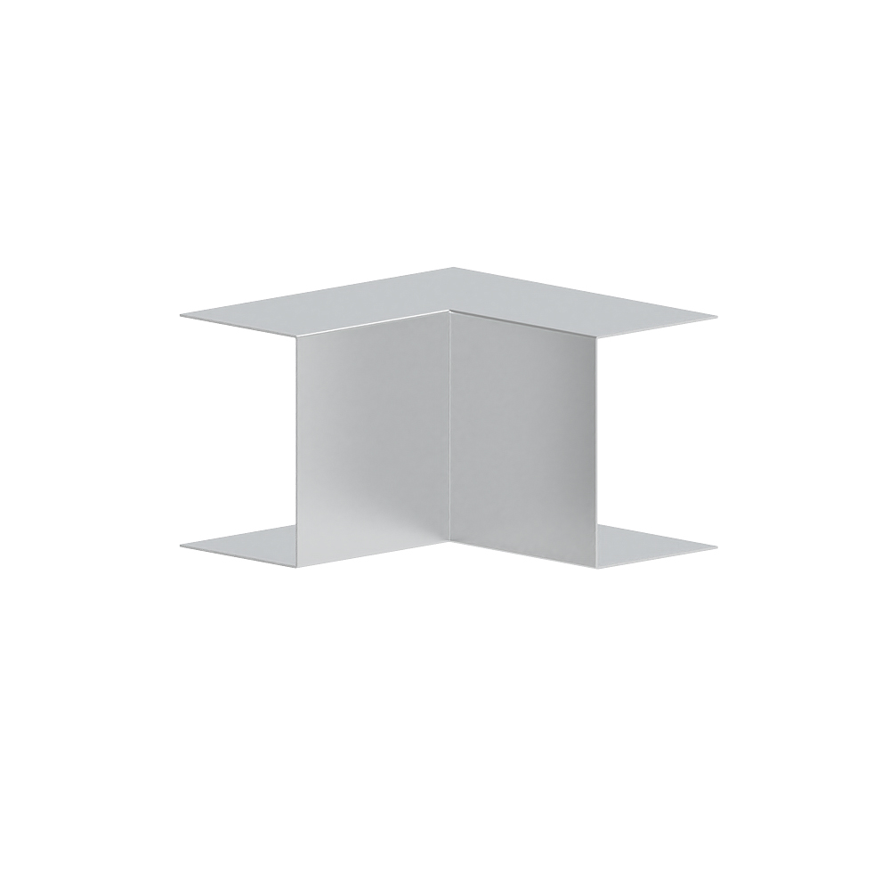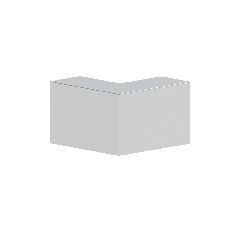 Inner corner as cut-covering moulded hood for aluminium wall duct, for corner bypass in rooms, with pre-assembled cover for plugging into the base.