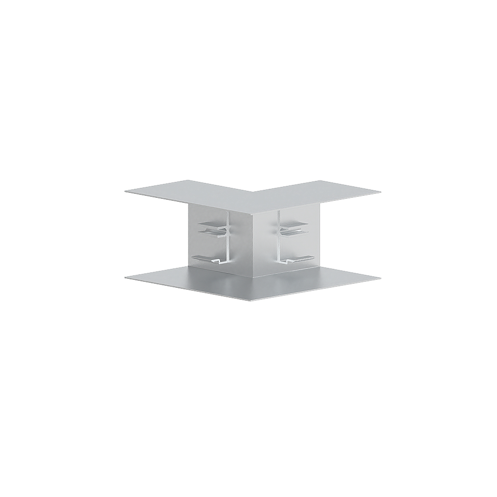 Inner corner as cut-covering moulded hood for aluminium wall duct, for corner bypass in rooms, with pre-assembled cover for plugging into the base.