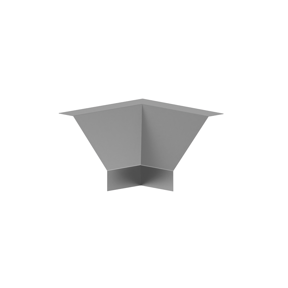 Inner corner as cut-covering moulded hood for wall duct made of sheet steel, for corner bypass in rooms, with pre-assembled cover for plugging into the base.