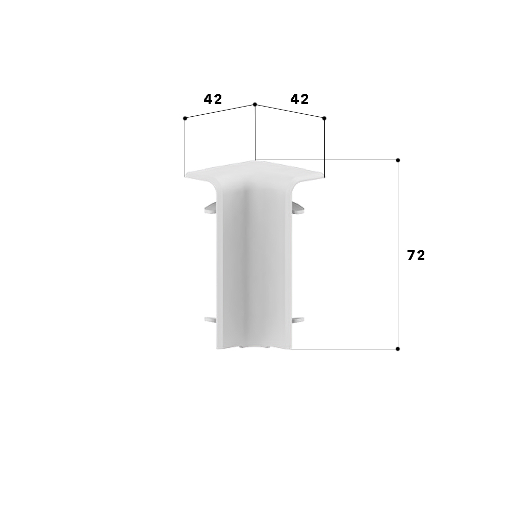 Internal corner to skirting trunking, for corner bypass in interior rooms, as moulded hood covers the two cut edges of the skirting cover, can be fitted by means of moulded-on snap-in hooks.