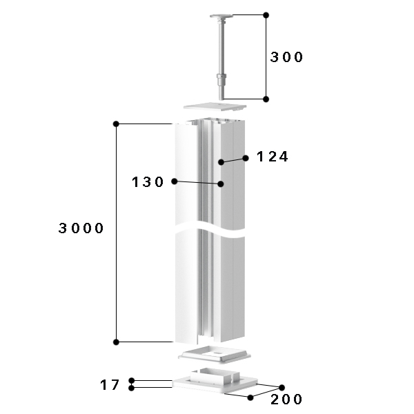 Installation column 124x130-9010, 3000 mm, 2-sided, aluminium, pure white