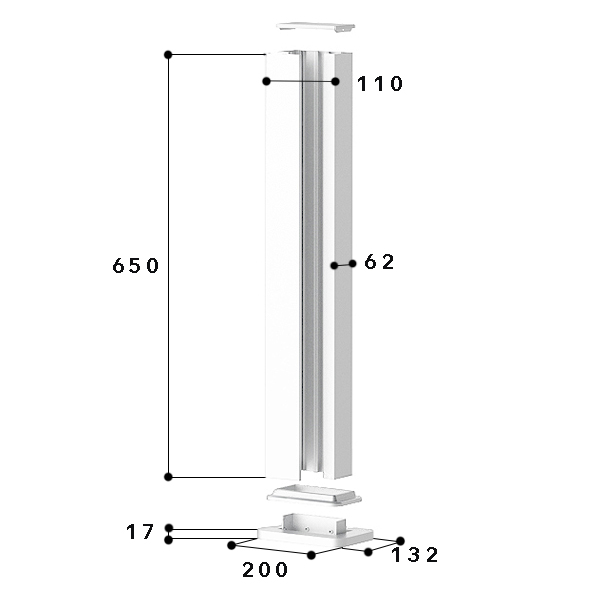 Installation column 62x110, 650 mm, 1-sided, aluminium, anodised