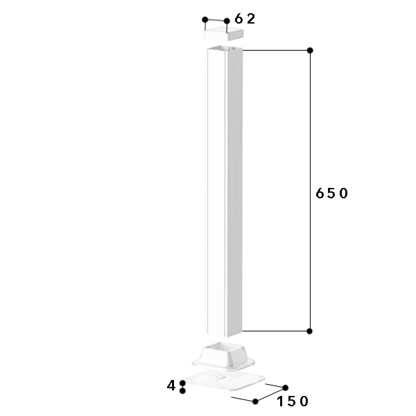 Installation column 62x62-9010, 650 mm, 1-sided, aluminium, pure white
