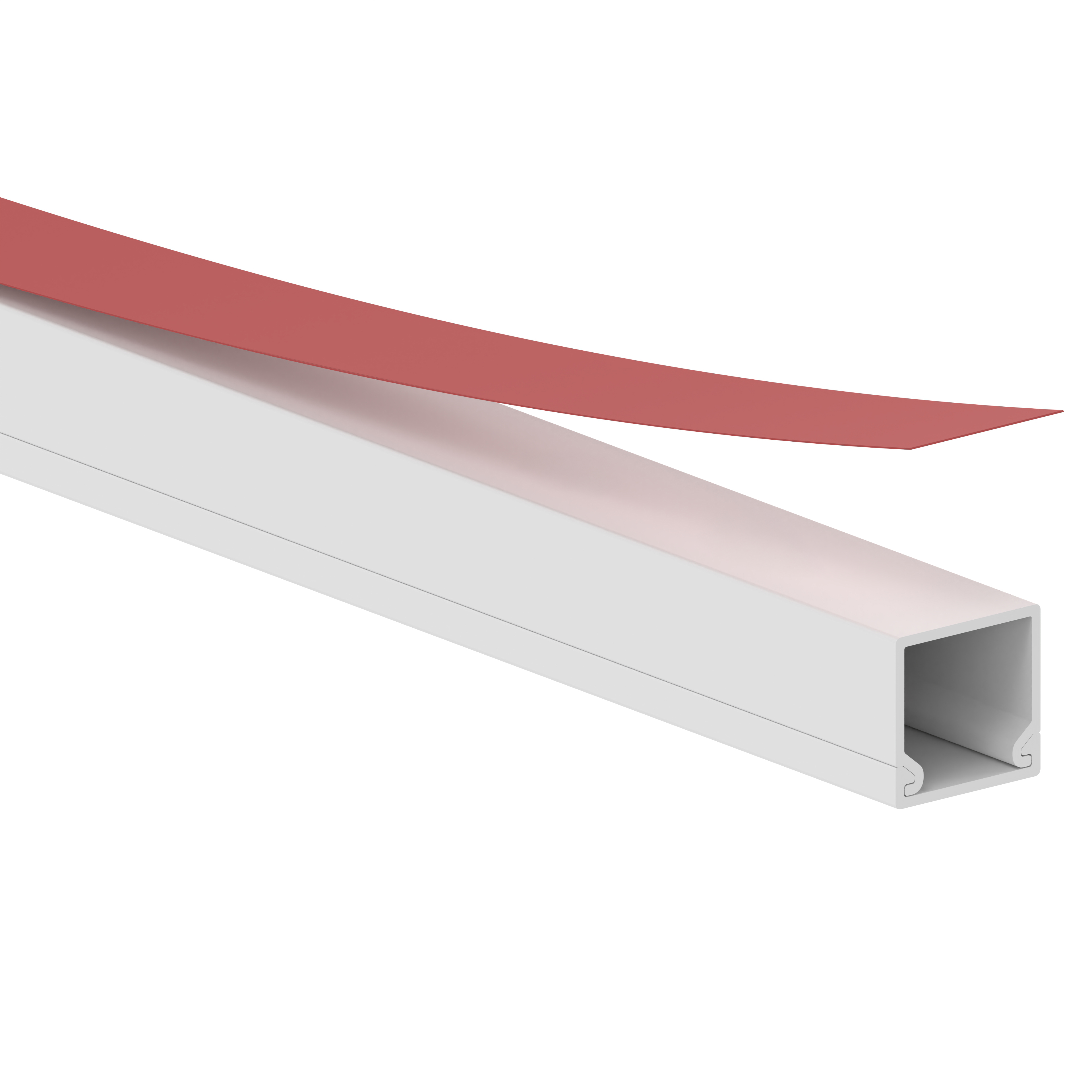 PVC installation trunking according to DIN EN 50085-2-1 for cable laying on walls and ceilings, consisting of a completely overlapping cover and base with double-sided film adhesive tape for fastening. Note: For long-term use, we recommend nailing or screwing.