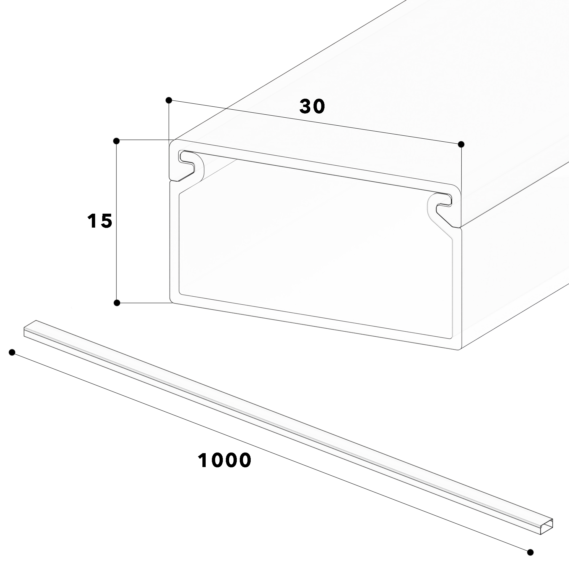 PVC installation trunking according to DIN EN 50085-2-1 for cable laying on walls and ceilings, consisting of a completely overlapping cover and base with single-row base perforation for fastening. Note: Sound and fire protection measures must be carried out professionally.