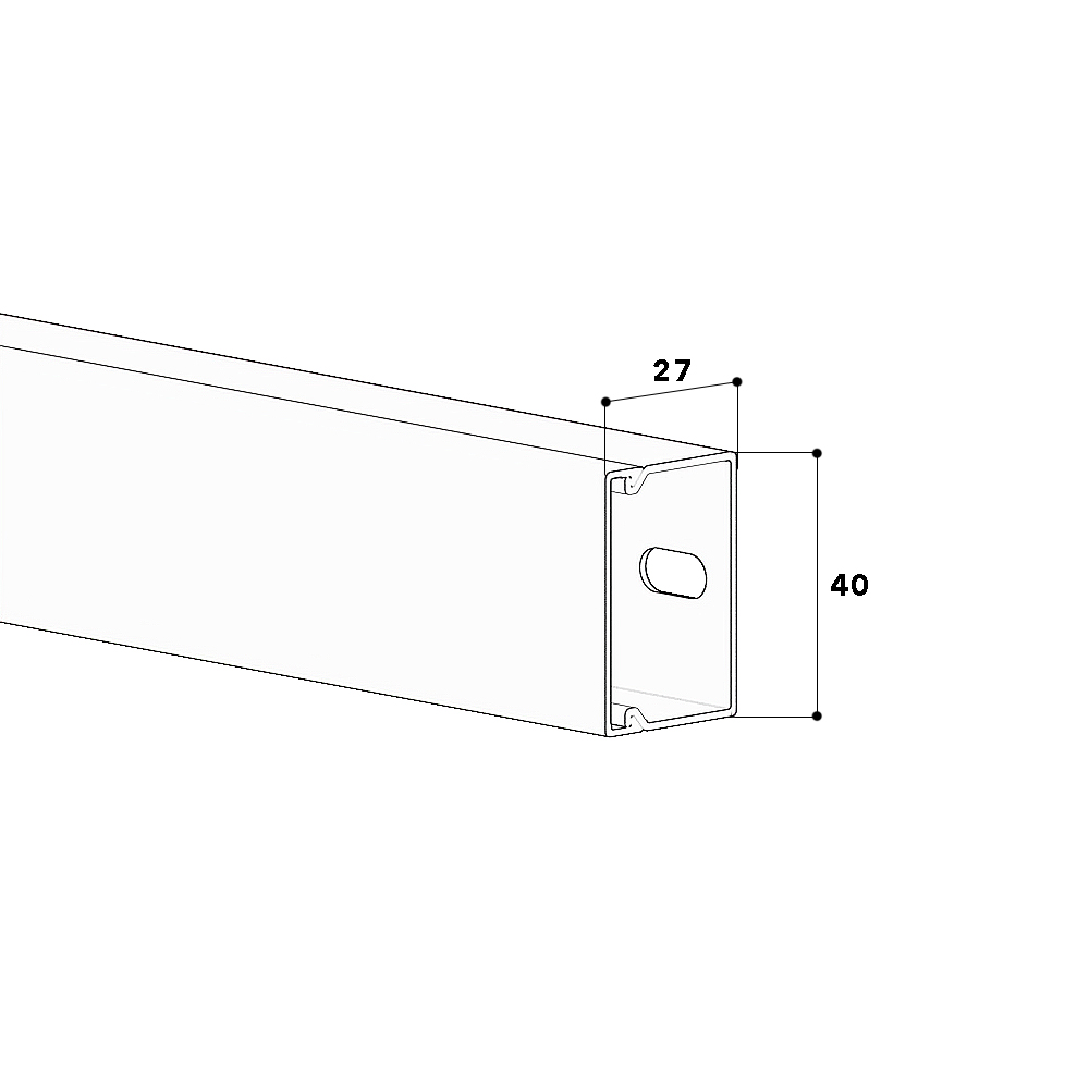 PVC installation trunking according to DIN EN 50085-2-1 for cable laying on walls and ceilings, consisting of a completely overlapping cover and base with single-row base perforation for fastening. Note: Sound and fire protection measures must be carried out professionally.