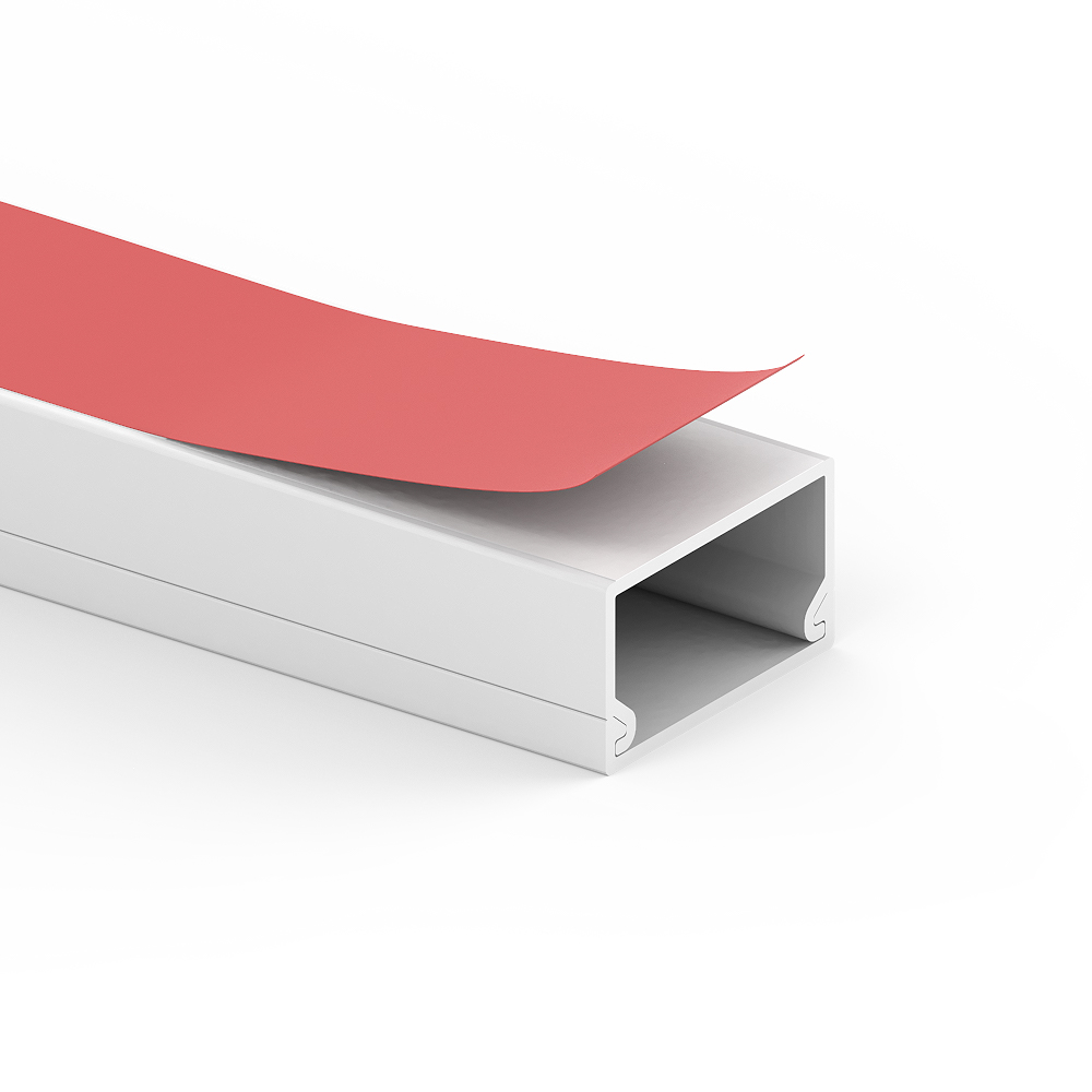 PVC cable duct according to DIN EN 50085-2-1 for cable laying on walls and ceilings, consisting of completely overlapping cover and base with double-sided adhesive foam tape for fastening. Note: For long-term use, we recommend nailing or screwing.