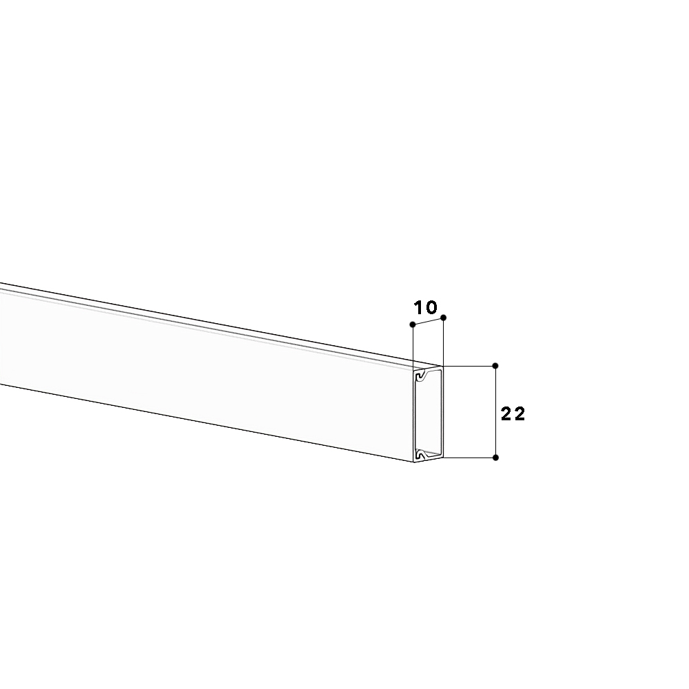 installation trunking made of PC/ABS (halogen-free) according to DIN EN 50085-2-1 for cable routing on walls and ceilings, consisting of completely overlapping cover and base with single-row base perforation for fastening. Note: Sound and fire protection measures must be carried out professionally.
