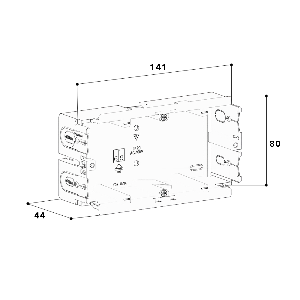 Junction box for wall duct double GDX/P-2 front-locking for BR/BRA/BRS
