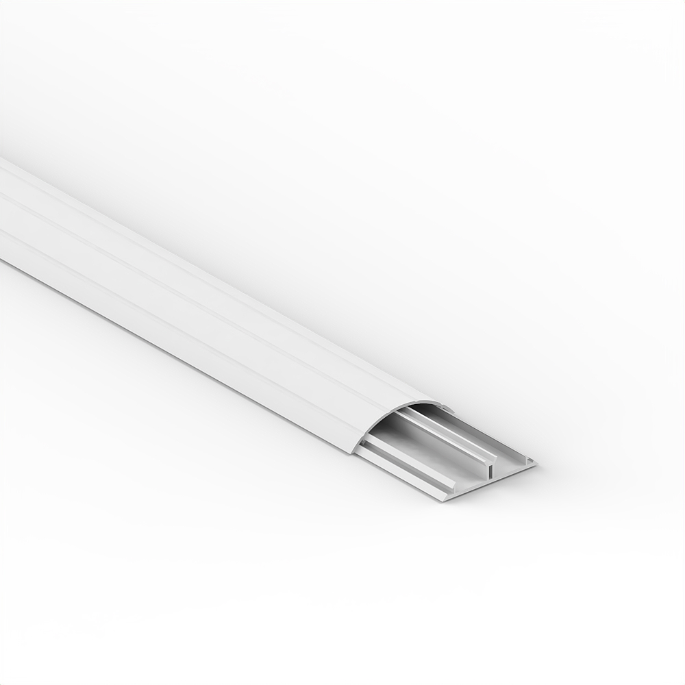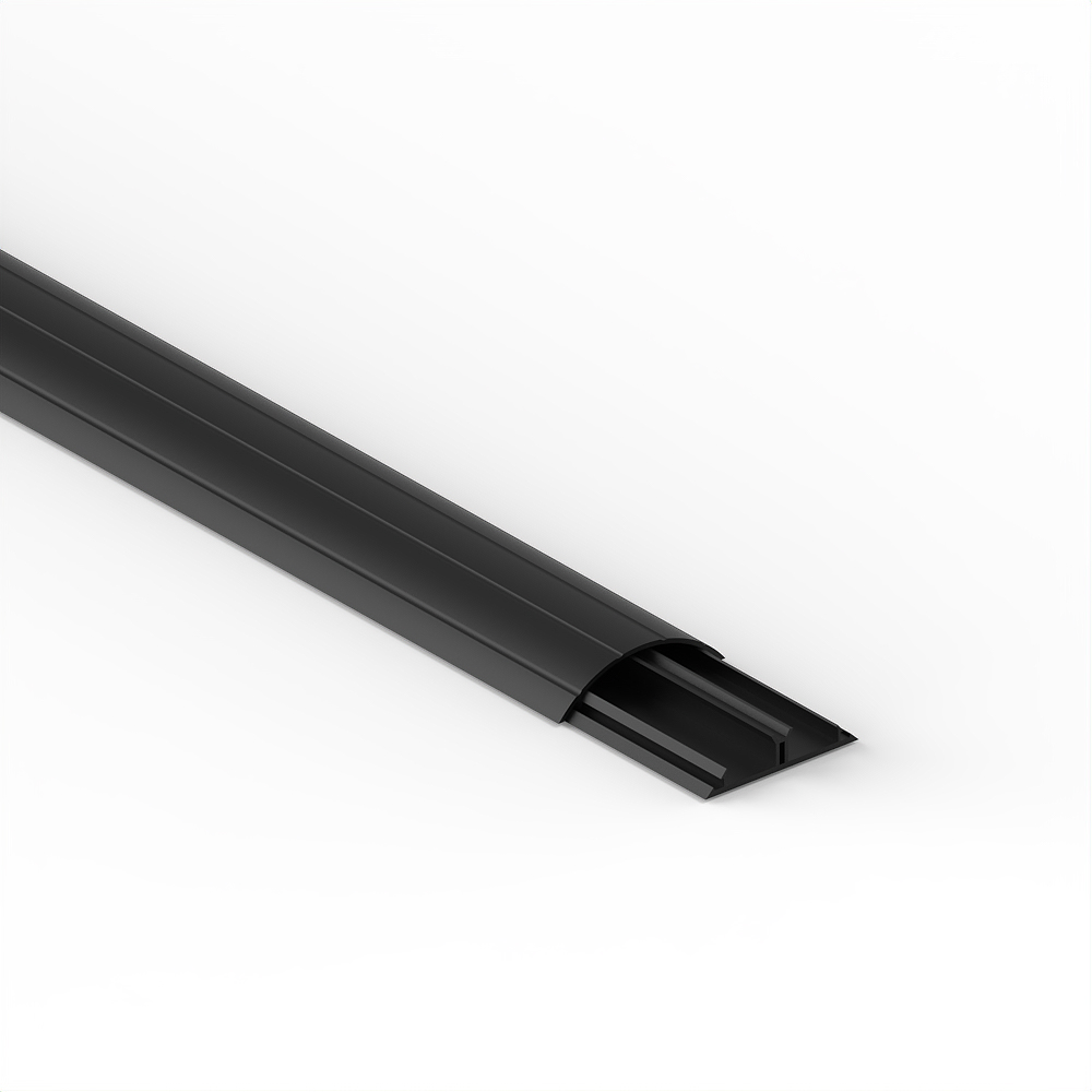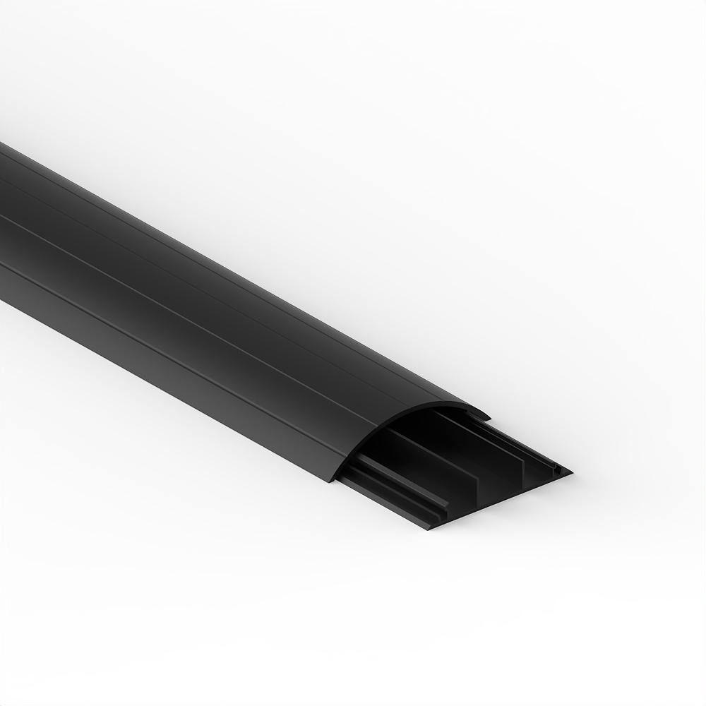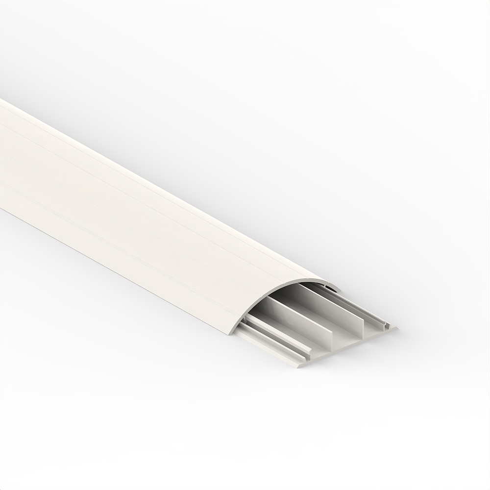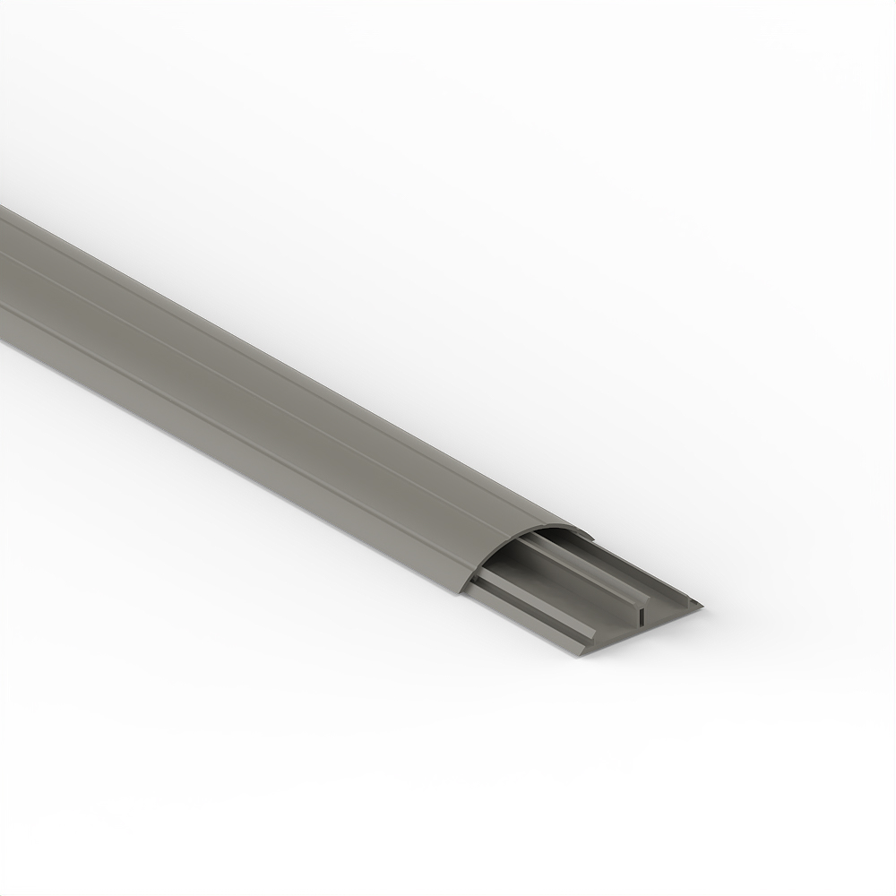 On-floor installation duct made of PVC according to DIN EN 50085-2-2 for the protection of cables and to avoid tripping hazards caused by cables lying on the floor, consisting of a base with two separate chambers and an overlapping cover with a fluted surface structure that is less sensitive to scratches. The profile can be walked on as well as stepped on and can withstand vertical loads of ~ 77 kg (750 N). Note: The colour of the bases may vary due to production.