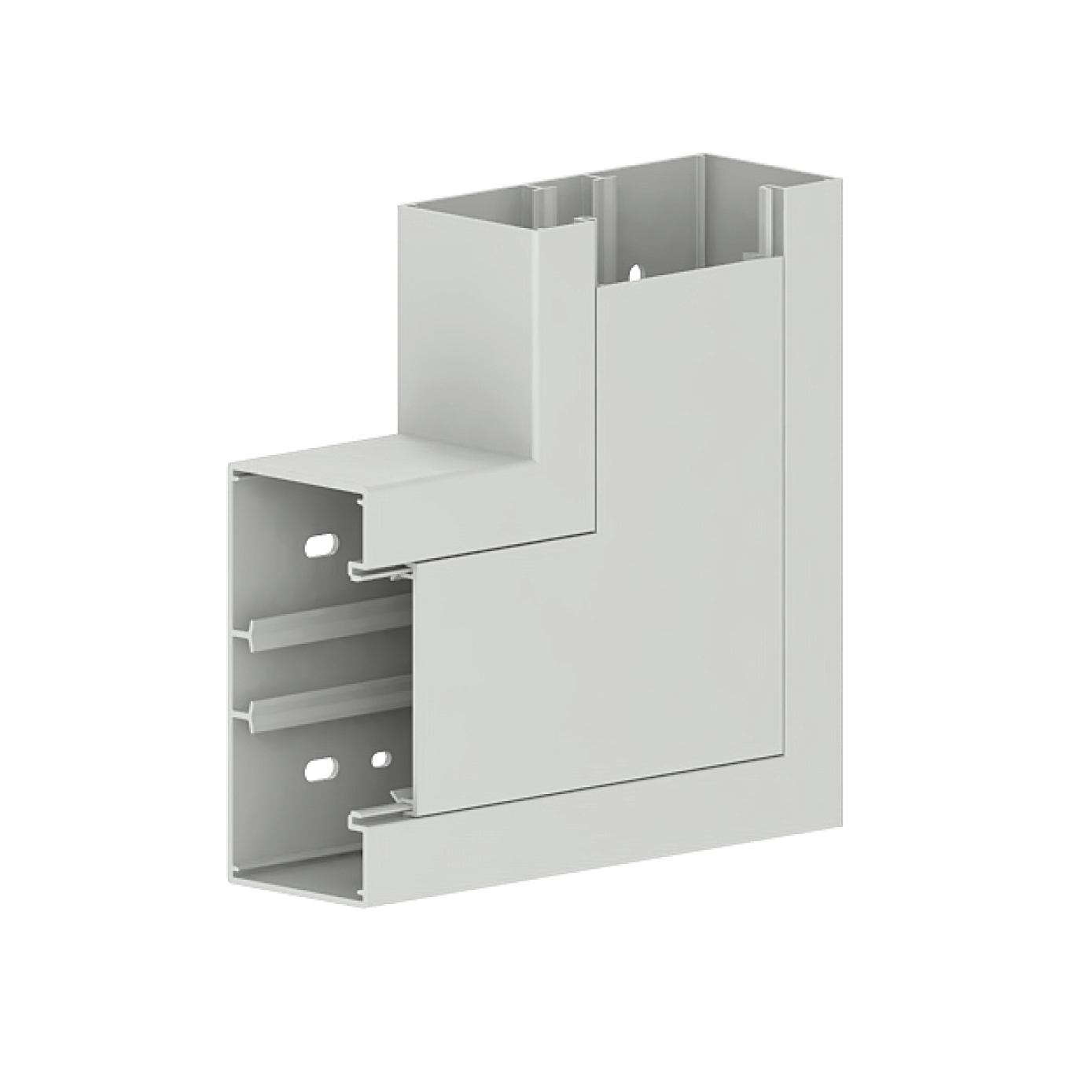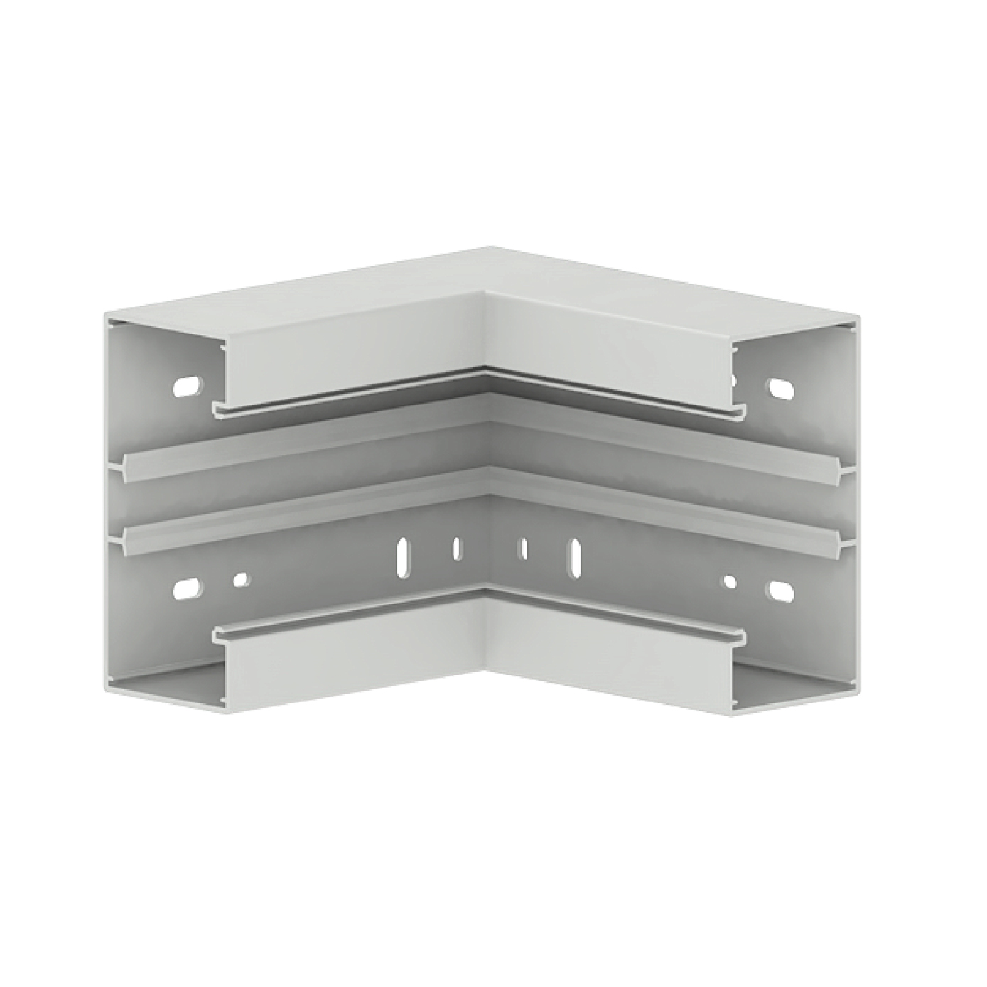 External corner as moulded part for wall duct, angle-adjustable with an adjustment range of +/- 10°, for laying cables around wall projections.