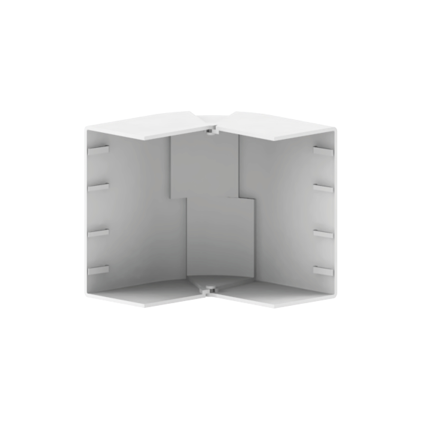 External corner as moulded part for wall duct, angle-adjustable with an adjustment range of +/- 10°, for laying cables around wall projections.
