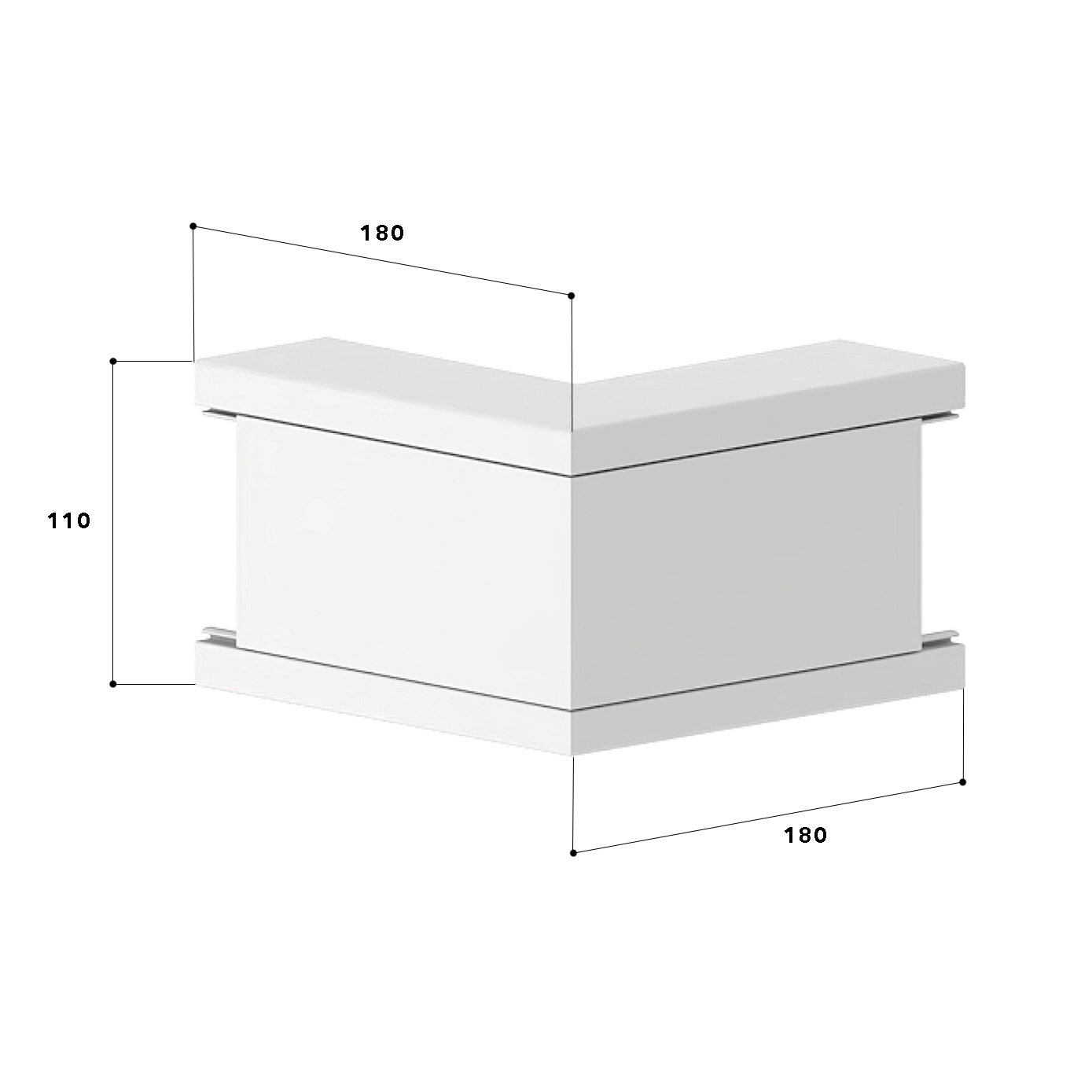 External corner 90°, from the basic profile of the wall duct made of PVC, for laying cables around wall projections, side length: 180 mm.