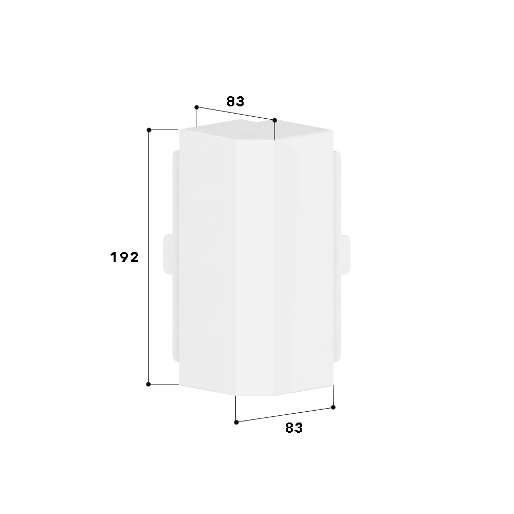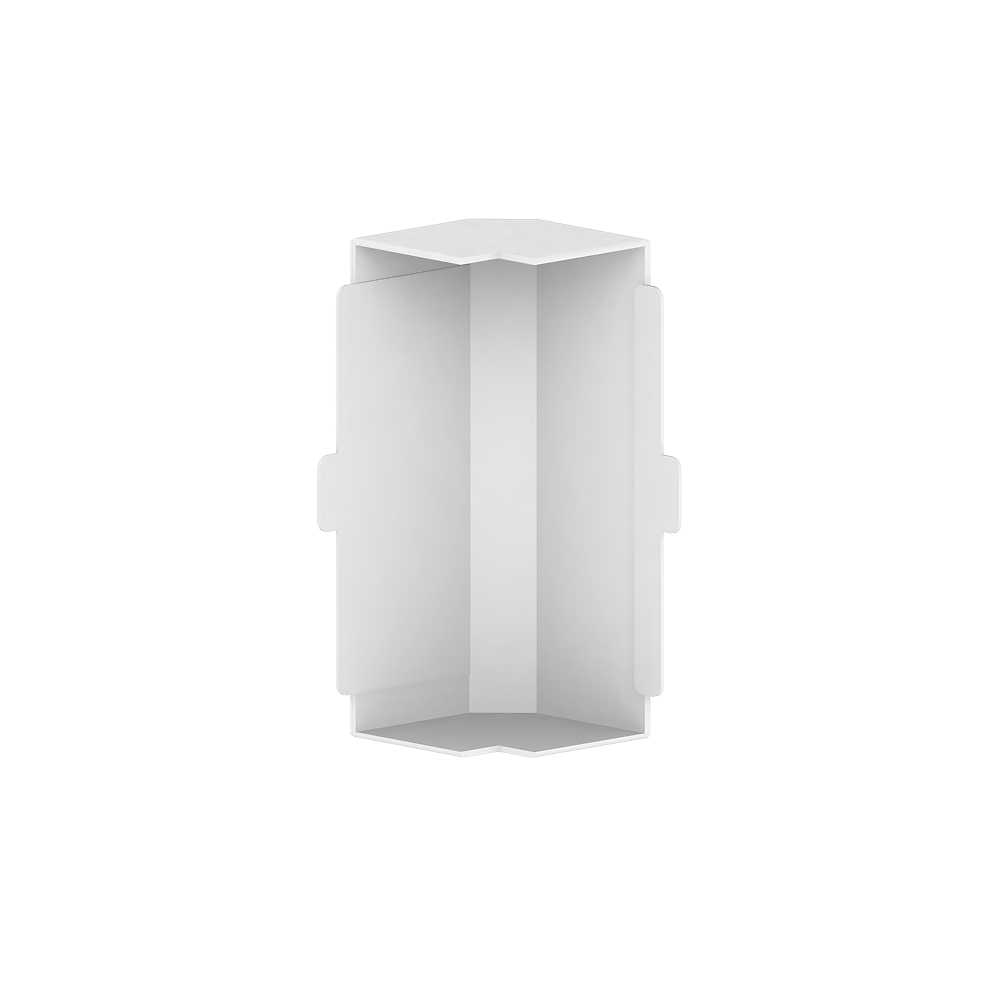 Outer corner as moulded hood for installation trunking, for routing cables around wall projections.