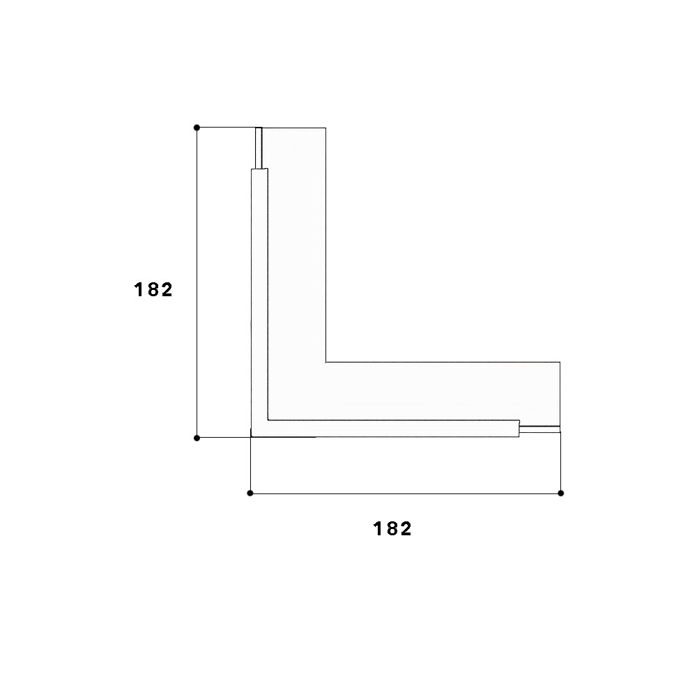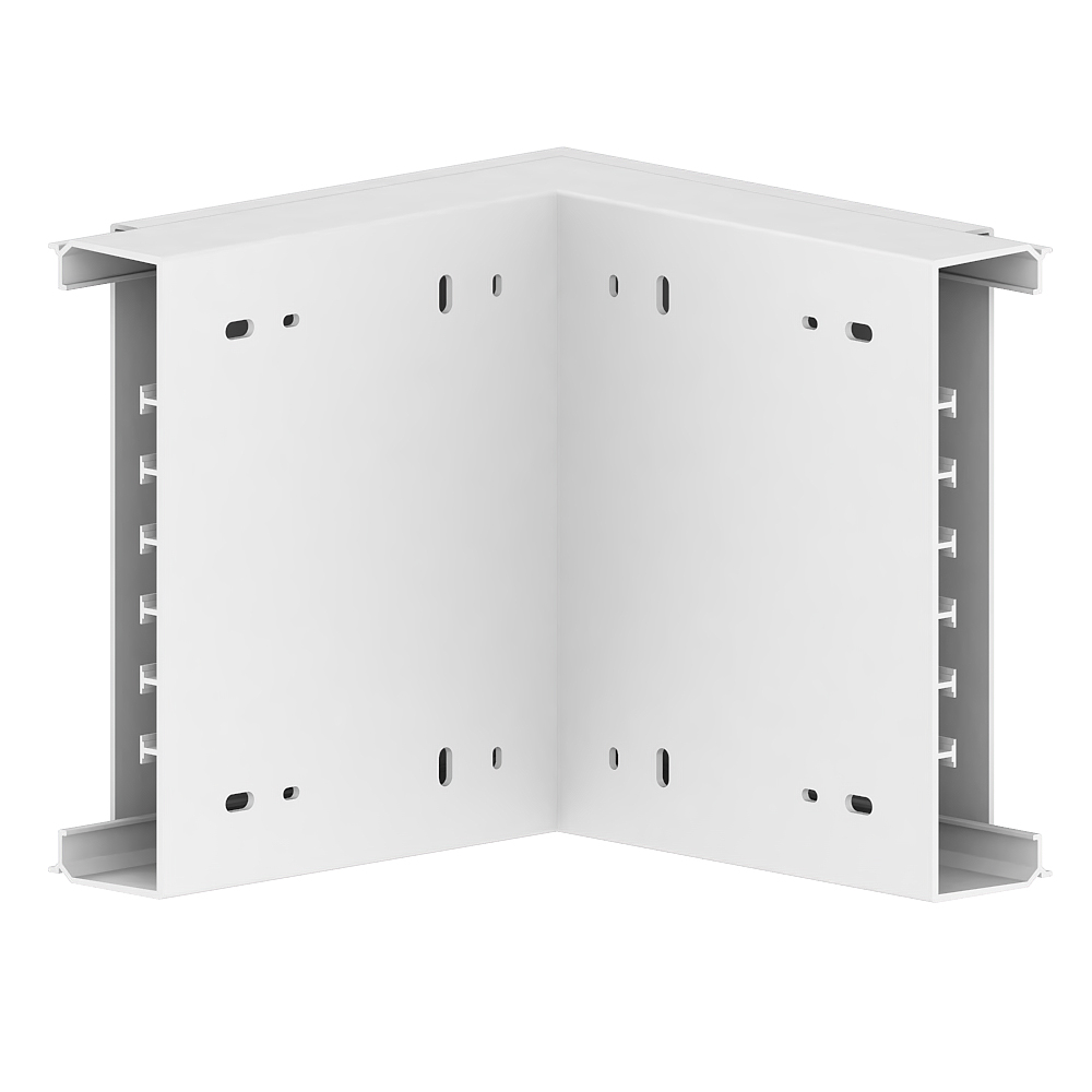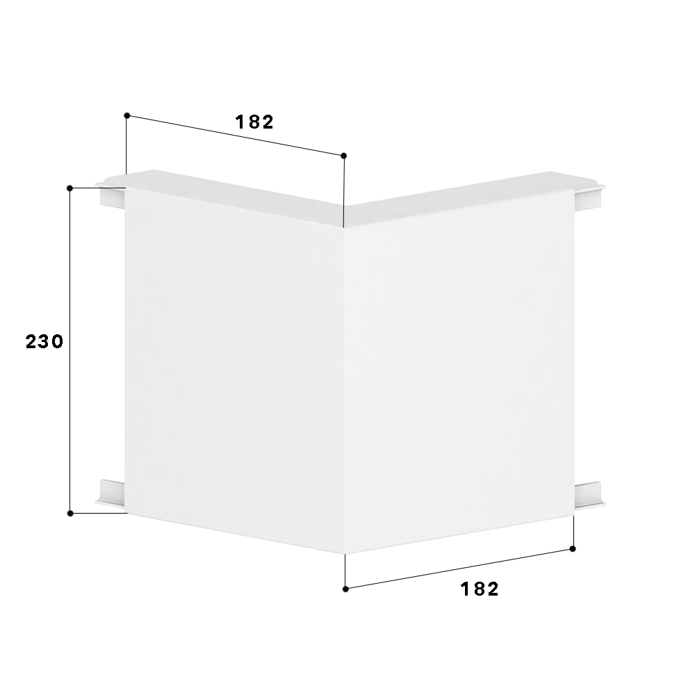 Outer corner 90°, from the basic profile of the PVC installation trunking, for routing cables around wall projections, side length: 180 mm.