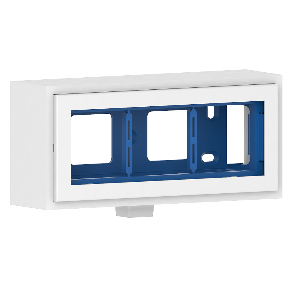 Outer corner as moulded hood for installation trunking, for routing cables around wall projections.