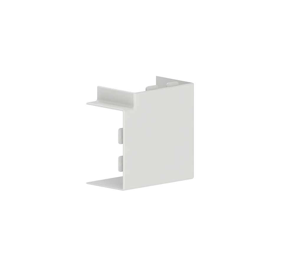 Outer corner as moulded hood for installation trunking, for routing cables around wall projections.