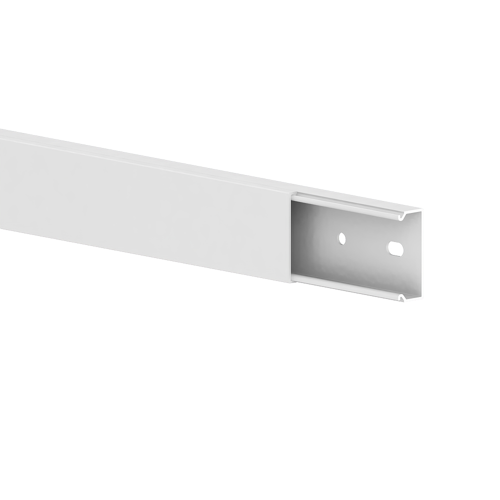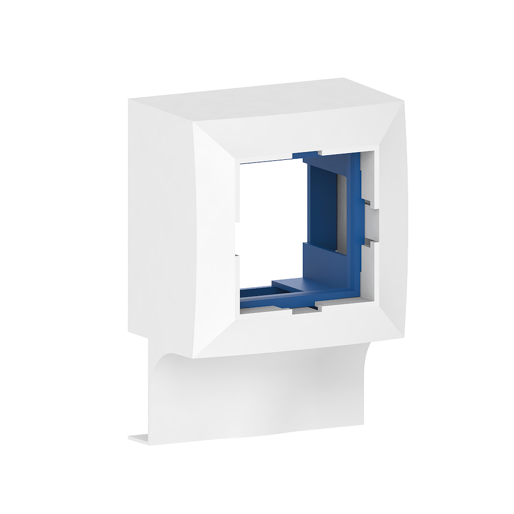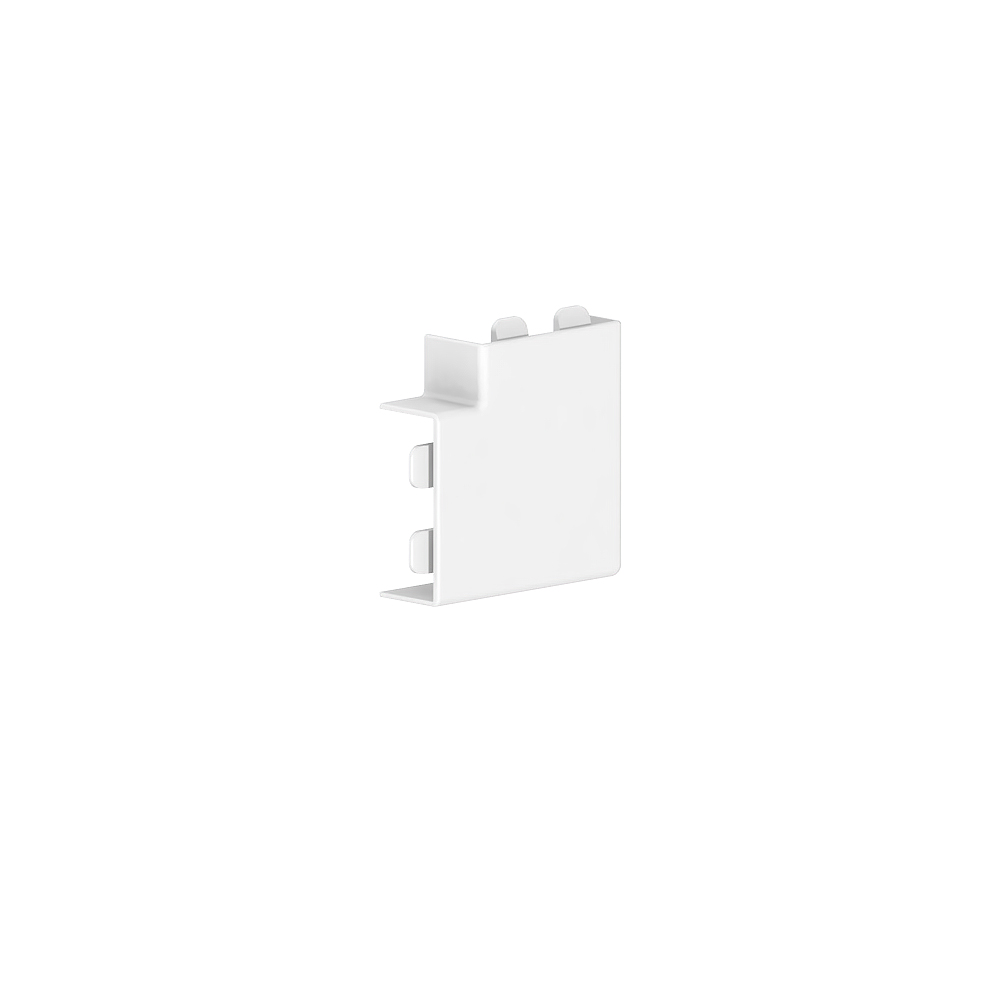 Outer corner as moulded hood for installation trunking, for routing cables around wall projections.