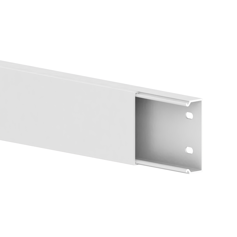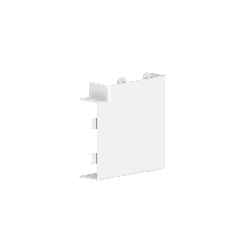 Outer corner as moulded hood for installation trunking, for routing cables around wall projections.