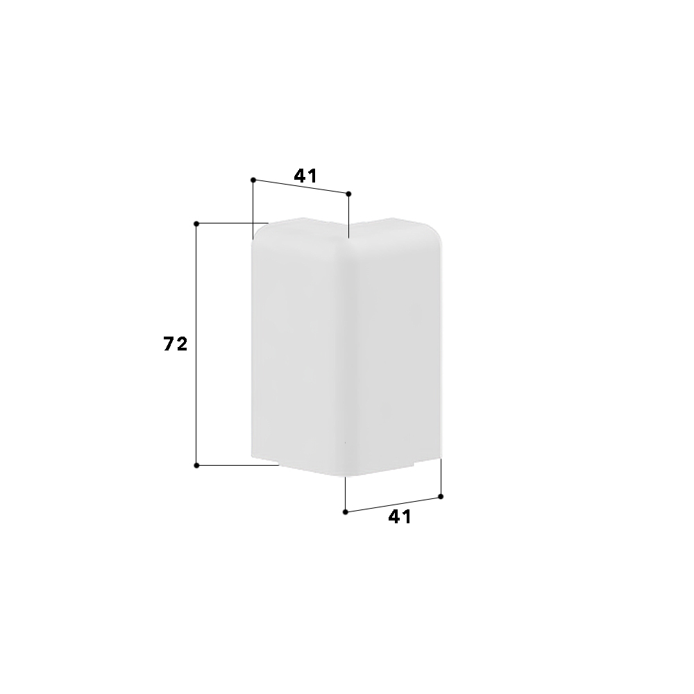 Outer corner to skirting trunking, for laying cables around wall projections indoors, as moulded hood covers the two cut edges of the skirting cover, clip-on with snap-in hook.